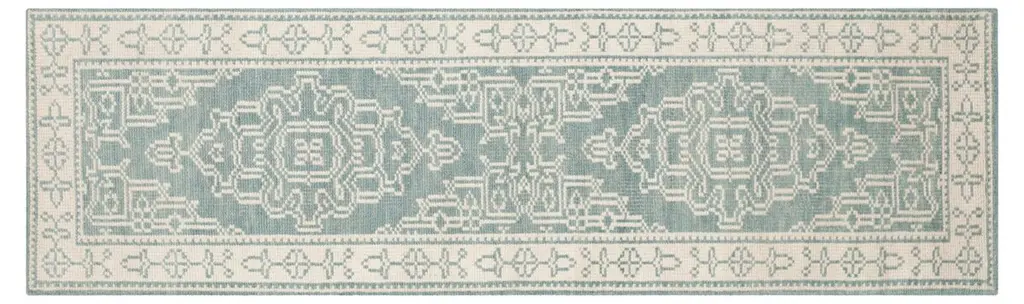 Designed with a dynamic medallion motif and floral border, this hand-knotted rug's wonderful layers of texture are achieved using with thick, over-stitched cut pile yarns. We recommend a rug pad to extend the life of the rug and keep it securely in place.