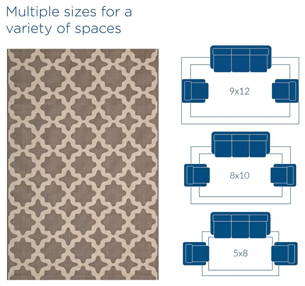Make a sophisticated statement with the Cerelia Moroccan Trellis Indoor and Outdoor Area Rug. Patterned with an elegant design, Cerelia is a durable and soft machine-woven polypropylene rug that offers wide-ranging support. Featuring an eight-point star design with a low pile weave and gripping rubber bottom, this all-weather area rug is a perfect addition to the outdoor patio, porch, deck, or inside the house in the living room, bedroom, kitchen, or dining room. Cerelia is a family-friendly, fade and stain resistant rug with easy maintenance. Hose down or vacuum periodically. Create a contemporary play area for kids and pets in high-traffic areas while protecting your floor from spills and heavy furniture with this carefree decor solution.Set Includes:One - Cerelia Moroccan Trellis 9x12 Indoor and Outdoor Area RugOverall Product Dimensions: 143.5"L x 108"W x 0.5"H