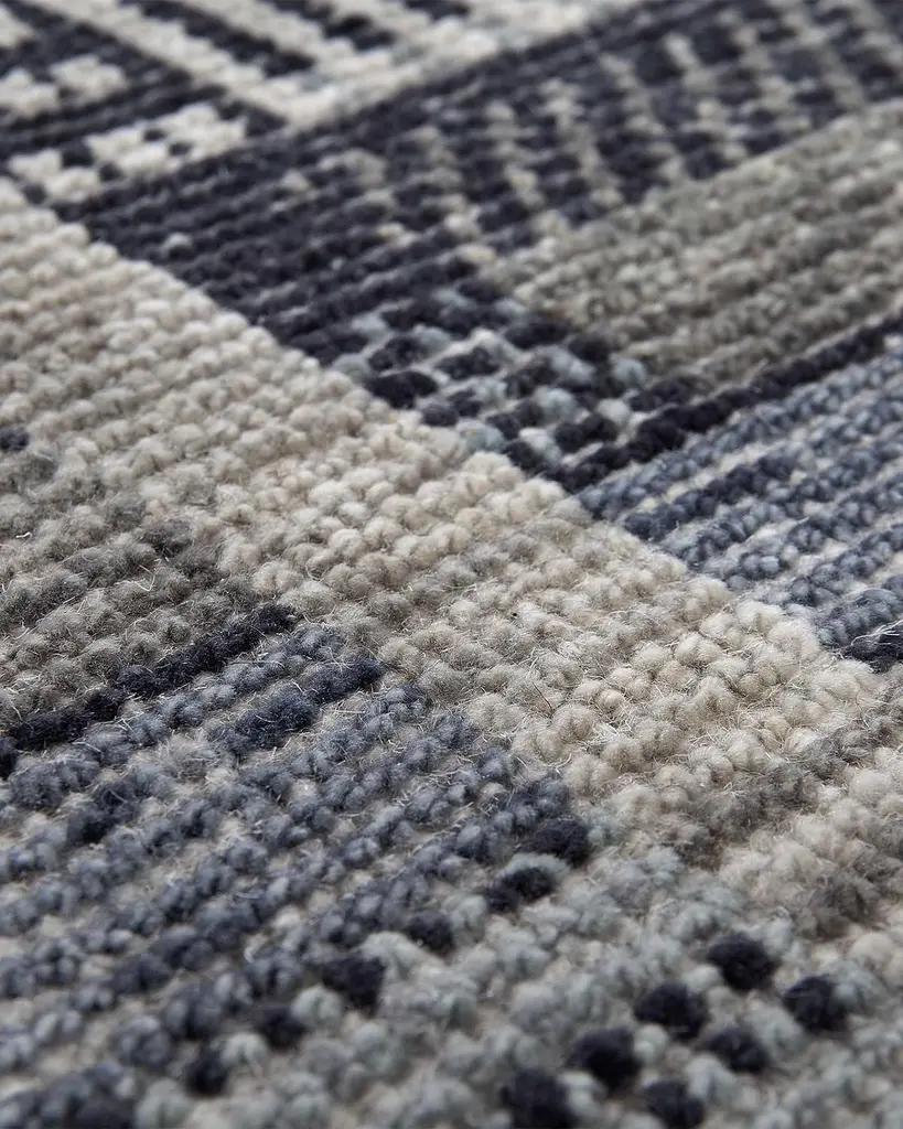 Ch44 Highland 365 Hand-Knotted Wool Rectangular Rug In Plaid Pattern By Mohebban