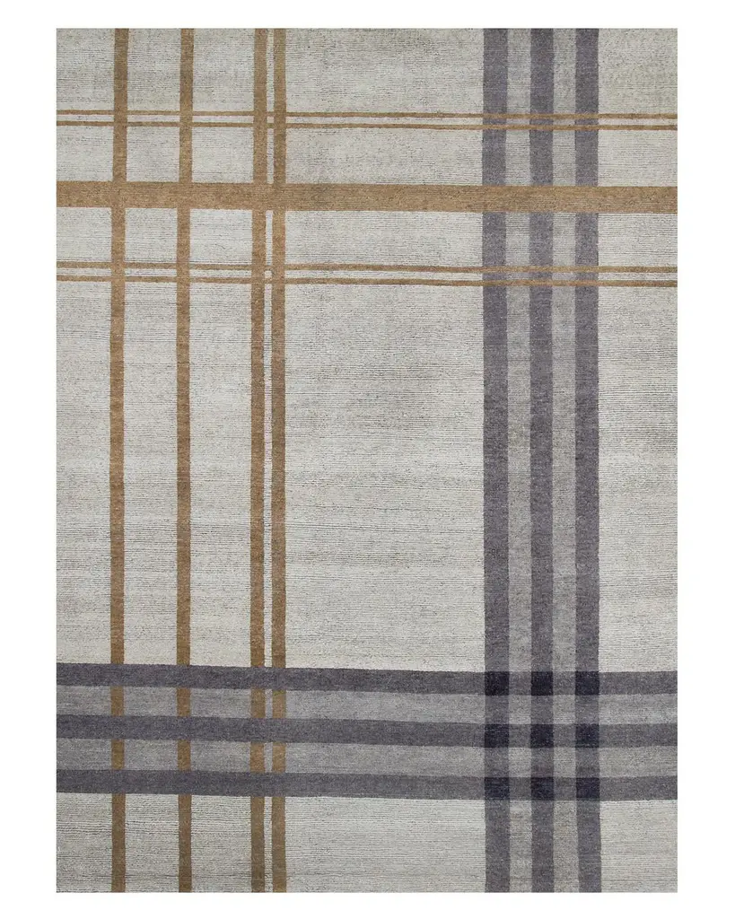 Ch44 Highland 425 Hand-Knotted Wool Rectangular Rug In Plaid Pattern By Mohebban