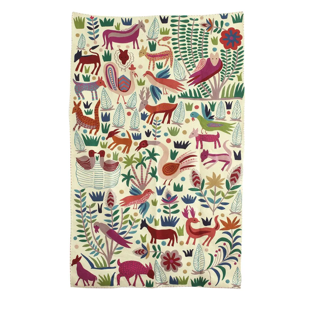 Says Indian artisan Amit Moza, "Kashmir is famous for beautiful and creative works of art. I want to spread Kashmir's art and craft." He creates this stunning wool area rug, featuring chain-stitched patterns performed by hand to depict jungle animals in their natural habitat. Using a specialized hook known as an aari, Amit carefully embroiders each animal for a winning composition that brings the beauty of India to your home.