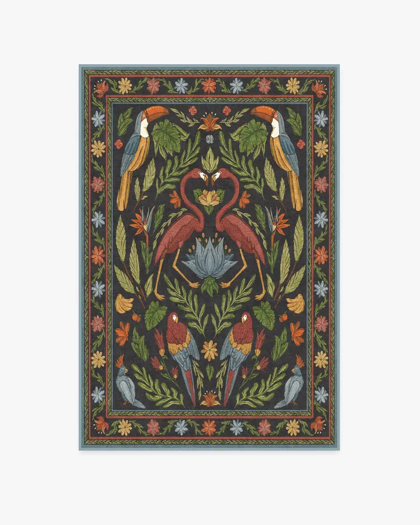 Chain-Stitched Animal-Themed Wool Area Rug (3x5) From India- The Jungle World Ii