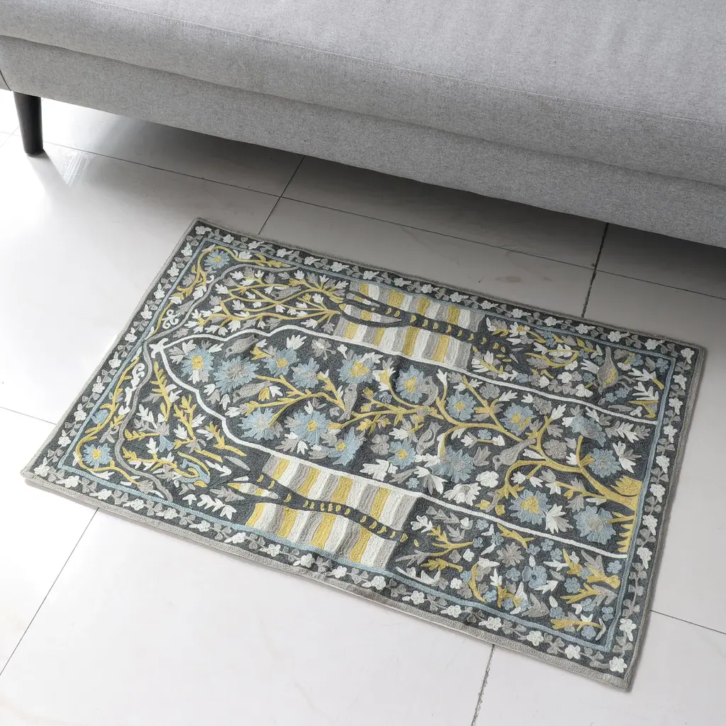 Chain-Stitched Wool And Cotton Tree Motif Rug- Winged Paradise