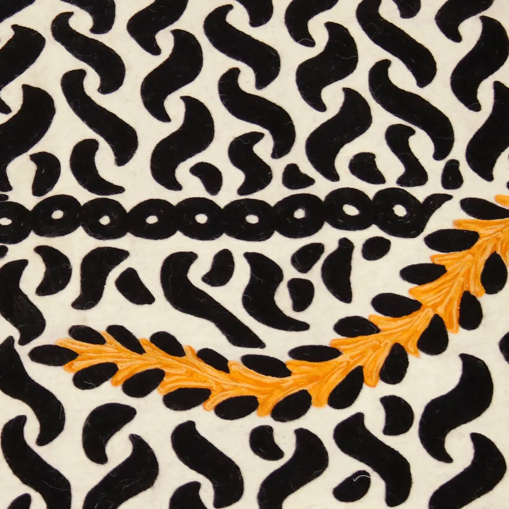 Amit Moza designs this wonderful rug to celebrate the magnificence of animals while bringing a traditional craft into the modern ambience. The wool rug, with its stunning tiger design, is skillfully crafted with India's traditional chain stitch-work. The uniquely-shaped antique white tiger is patterned with black stripes and other designs that can take up to 20 days to complete by hand. The cotton backing adds durability to the amazing rug.