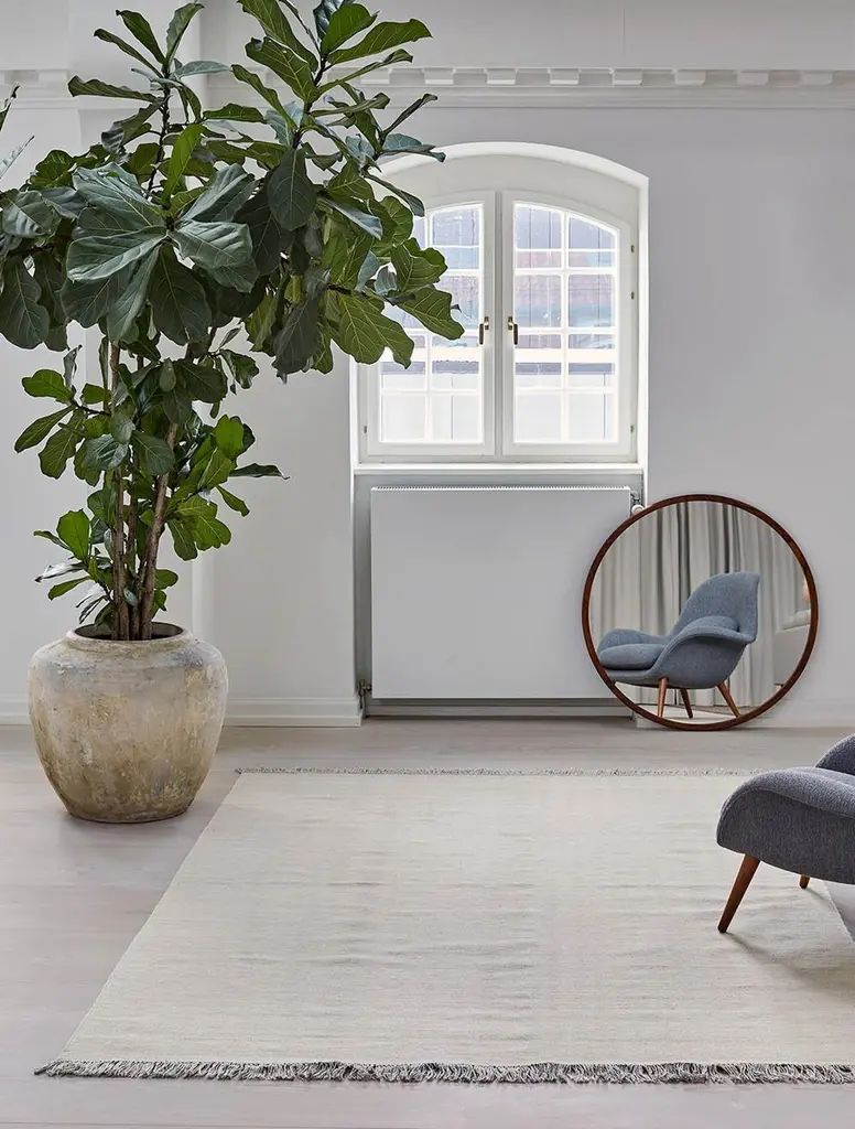 Chalk with Fringes Escape Kelim Carpet by Massimo CopenhagenDesigned by Space CopenhagenHandwovenMaterials: 100% undyed natural wool.Dimensions: W 300 x H 400 cmAvailable colors: Chalk, Chalk with Fringes, Light Beige, Light Beige with Stitches, Muscat, Muscat with Fringes, Stone, and Stone with Stitches.Other dimensions are available: 170x240 cm, 200x300 cm, 250x350 cm, and special sizes.The series of kelim rugs by Space Copenhagen for massimo focus on the subdued colour tones and the natural feel. The designer’s wish has been to design a modern collection of minimal, yet tactile and crafted rugs with subtle details – to support and enhance the warmth, softness, human layer and ambience in a modern space.The Escape Kelim is all about diving into the traditional techniques of Kilim Weave. All the rugs in the collection are handwoven in India from natural yarns, no bleach and no dyes, which makes them stronger, easy to maintain and long lasting.Underlay carpet is included.Handwoven – 100% Undyed Natural WoolOUR STORYWe believe that any interior can be elevated with uplifting colours and pleasant textures. At massimo we do it one rug at a time and with the greatest of attention to design, quality, sustainability – and you.Because all great results start with dialogue, quality and empathy. For more than 20 years massimo has focused on creating handmade rugs for both private homes, public spaces as well as developers.We approach every inquiry with the same attention and curiosity, whether the best solution is one of our signature quality rugs always on stock or a one-of-a kind bespoke rug designed and made especially for the occasion.We cannot and we will not deny our Scandinavian origin. We have a passion for subtle, natural colour schemes and long-lasting functional design – but are not afraid to challenge and tempt with a bolder, more colourful alternative.After all, a rug is the soul of a room – and some souls are simply more hot-spirited.