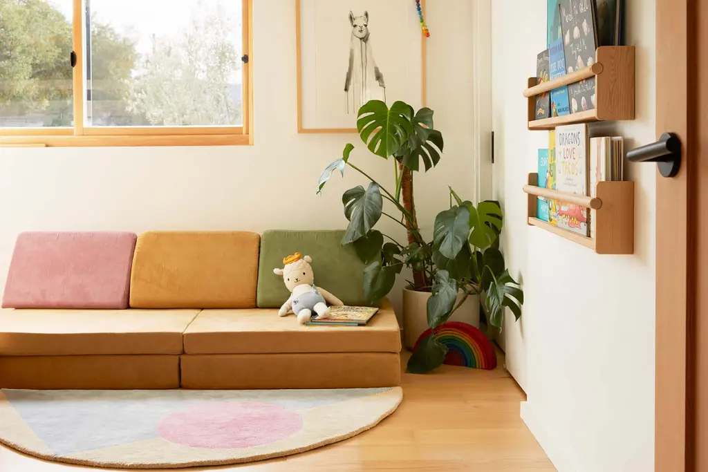 We used remarkably soft OEKO-TEX certified cotton for safety and sturdiness. Sustainably made and rigorously tested, its fibers are guaranteed to be healthier for tummy time. Hand-tufting allowed us to more easily make the kinds of shapes we wanted, and a vintage Southern California palette of candy pinks and blues feels both bright and sun-faded.