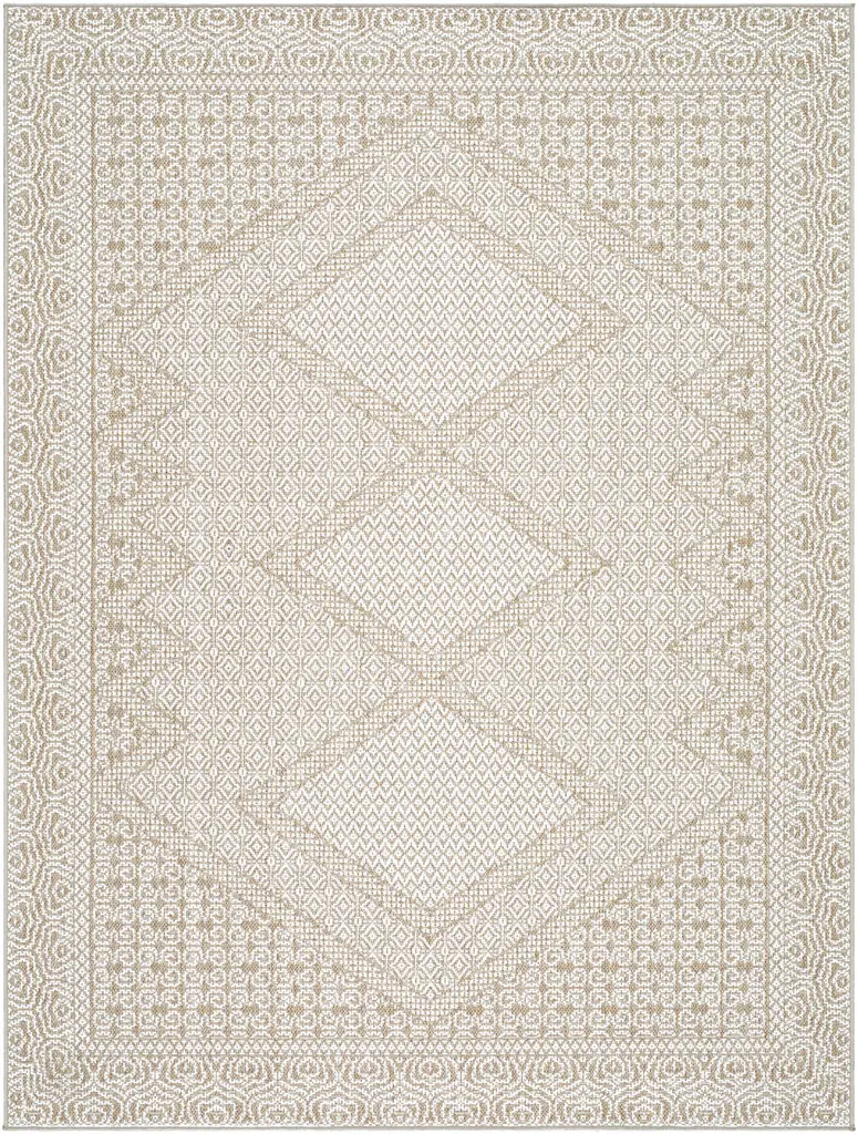 Collection: Chaman Colors: White, Tan Construction: Machine Woven Material: 100% Polypropylene Pile: No Pile Styles: Transitional,Traditional Backing: Outdoor Latex Outdoor Safe: Yes Made In: Turkey Thickness: 0.28" Price Range: $$$$$ (Most Affordable)