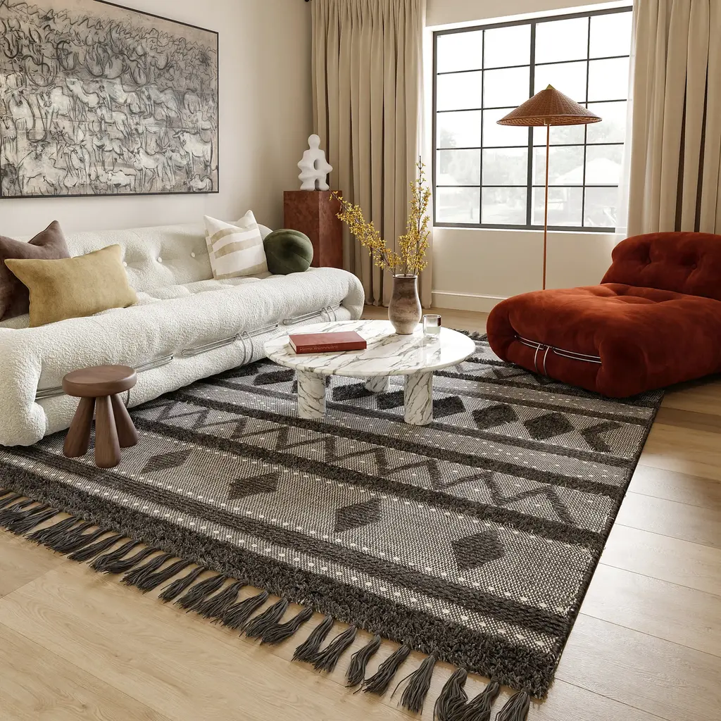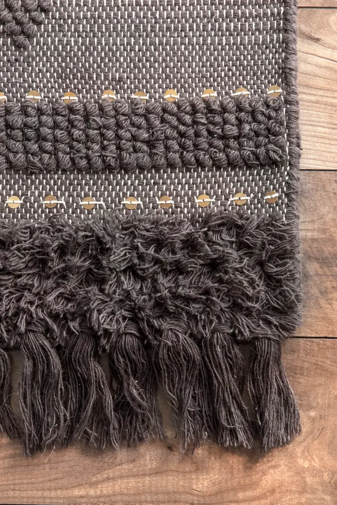 The detail! Featuring a blend of high-low shaggy pile, hand-tufted motifs, and decorative sequins, the Chandy Rug has texture for days. A long-standing favorite of the designer. Its eclectic design is sure to add some bohemian flair to your space, while also keeping things laid back and low-key. Made of 100% wool, this rug is super soft underfoot, too.
