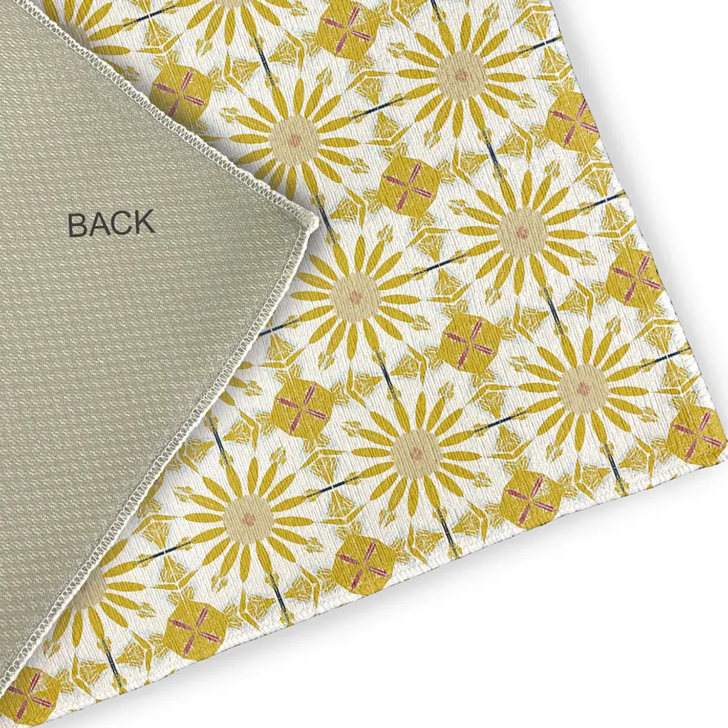 Styling your home has never been so easy than with a Chaney Indoor/outdoor Rug from our Upscale Getaway Collection. Everyone will delight in the space defining design brought to your porch, patio, kitchen, or bathroom by this area rug. The artistic and colorful design is printed on a soft polyester base with a skid resistant backing, making it a perfect way to add color, flare and personality to any indoor or outdoor space. To clean, use a mild soap and lay flat to dry.