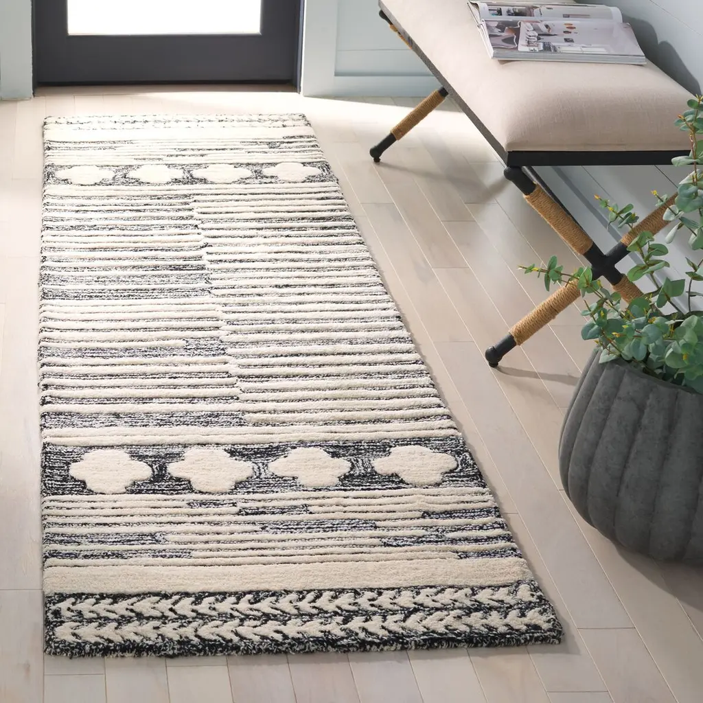 Indulge in the refined sophistication of our 3' x 5' small rectangular area rug in a harmonious blend of cool grey and soft ivory. Hand-tufted to perfection in India, this exquisite piece boasts an unmistakable aura of understated elegance through its contemporary style. The rug features a subtle height of 1/2'', providing it a plush yet manageable profile. Crafted with a high-quality composition of 60% wool, 30% polyester, and 10% cotton, this balanced mix ensures enhanced durability and superior comfort. Whether it's under your coffee table or welcoming guests in your hallway, this stunning rug will add a touch of modern charm to any space. Transform your living area with this luxurious contemporary piece and experience the distinct touch of Indian craftsmanship.