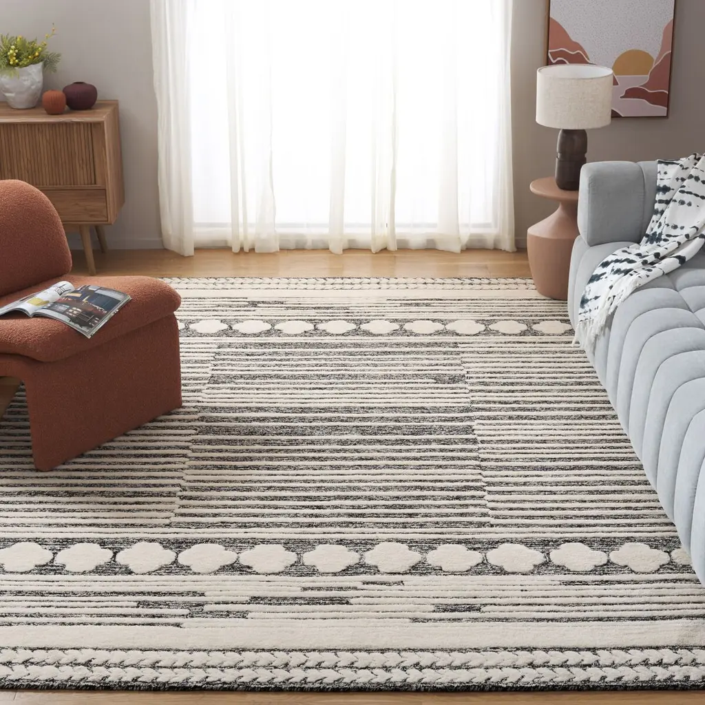 Indulge in the refined sophistication of our 3' x 5' small rectangular area rug in a harmonious blend of cool grey and soft ivory. Hand-tufted to perfection in India, this exquisite piece boasts an unmistakable aura of understated elegance through its contemporary style. The rug features a subtle height of 1/2'', providing it a plush yet manageable profile. Crafted with a high-quality composition of 60% wool, 30% polyester, and 10% cotton, this balanced mix ensures enhanced durability and superior comfort. Whether it's under your coffee table or welcoming guests in your hallway, this stunning rug will add a touch of modern charm to any space. Transform your living area with this luxurious contemporary piece and experience the distinct touch of Indian craftsmanship.