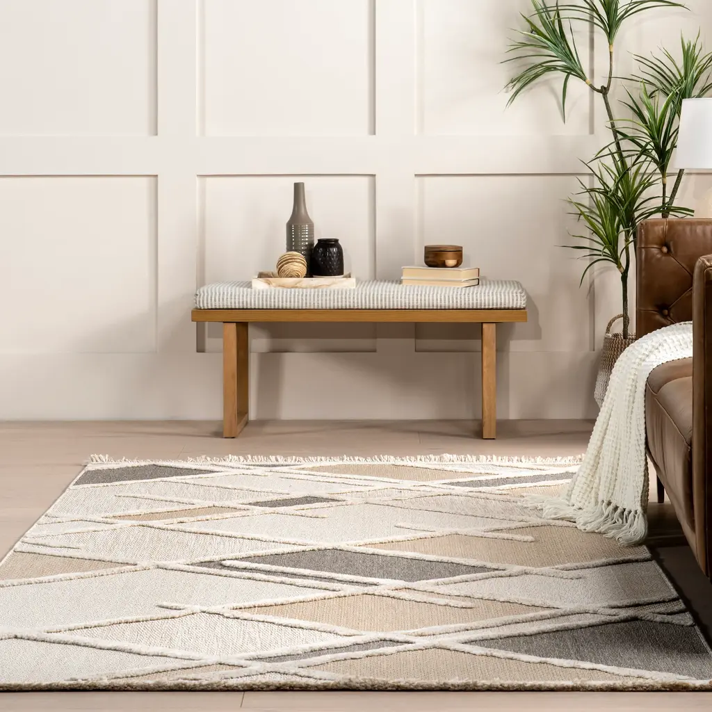 A true testament to the artistry of weaving, this rug utilizes loop and shag construction techniques to create a visually stunning and textured design that will elevate any room. Featuring three different weaving techniques. Each technique adds its own unique element to the rug, enhancing its overall aesthetic and creating a truly exceptional piece. Its high-quality construction ensures long-lasting resilience, making it suitable for high-traffic areas of your home. Whether placed in a living room, bedroom, or study, this rug effortlessly adds a touch of sophistication and coziness to any space.