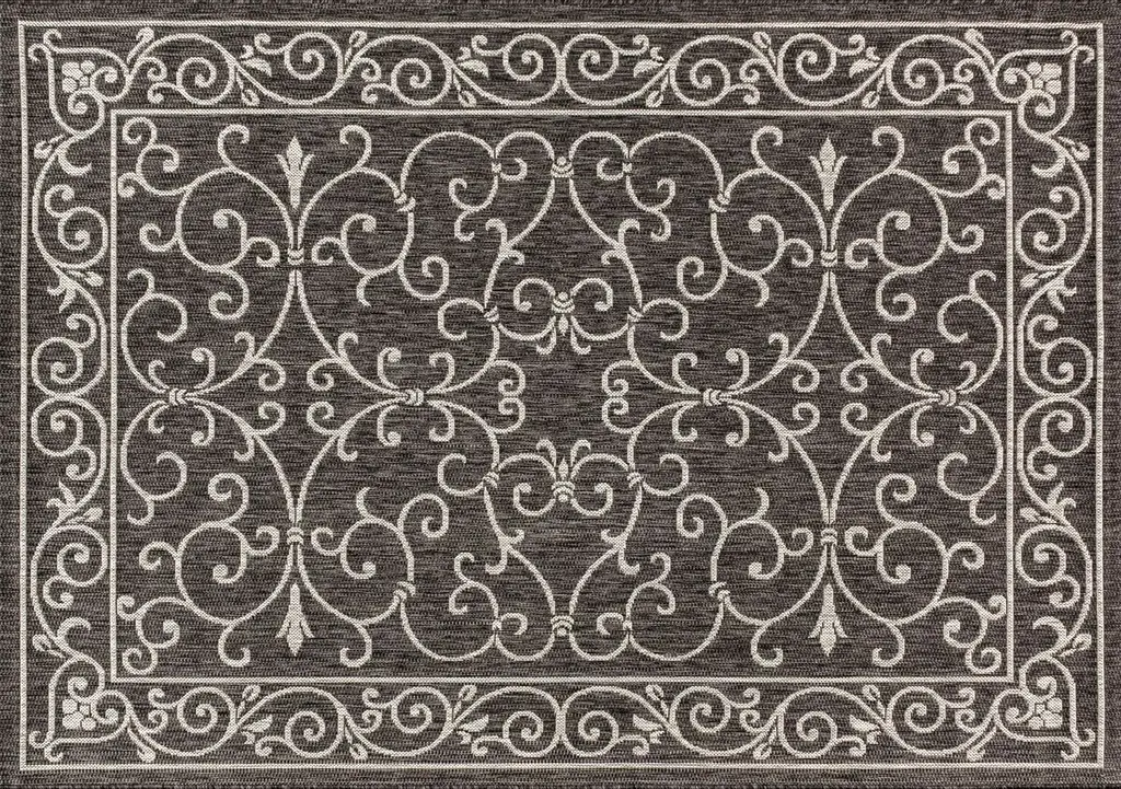 Charleston Filigree Textured Weave Indoor/outdoor, Black/gray, 9 X 12