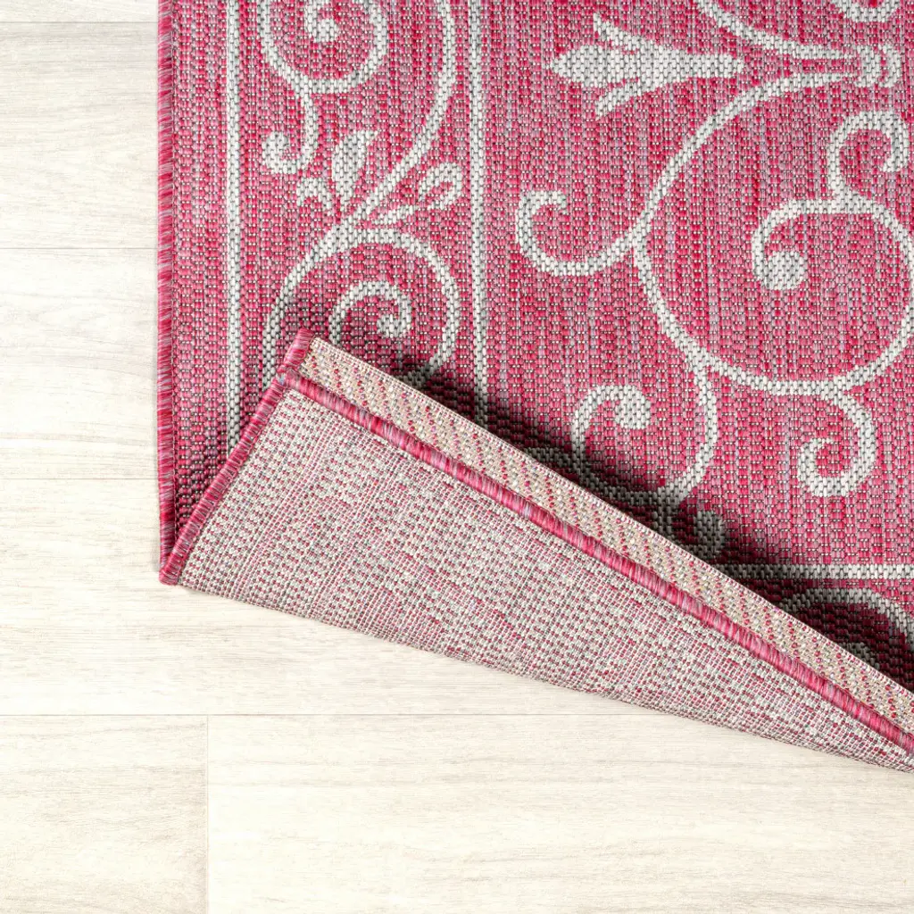 With a filigree design reminiscent of antique iron gates, our Boho-chic rug adds eclectic style to an outdoor porch or patio. Tones of cream mingled with a soft green pattern give this rug a hand-woven, vintage vibe. The flatweave design is great for high-traffic spaces indoors too.Features:• Water resistance with 0.19" pile• Fuchsia and cream with a handwoven mingled texture• Flat-weave construction of 100% polypropylene• 100% Polypropylene• No backing, use of rug pad is recommended (sold separately)• Power Loomed in Turkey• Actual Dimension: 2 ft. 2 in. x 8 ft.• Color: Fuchsia/Light Gray• Thickness measures: 0.19 in.• Available in multiple sizes and/or colorsRug Care:• Vacuum regularly and spot clean as needed; avoid direct and continuous exposure to sunlight; use brushless vacuum; remove spills immediately; if liquid, blot with clean, undyed cloth by pressing firmly around the spill to absorb as much as possible; for hard to remove stains, professional rug cleaning is recommended; store in a dry, well ventilated area and rotate for consistent wear• Packing and shipping may cause temporary creases in rugs, which will flatten out after a week on the floor; to expedite the process, try back-rolling your rug before laying it down, and then allow ample time for the remaining creases to relax• Please Note: Due to differences in monitors, some rug colors may vary slightly. Lengths and widths may vary from the published dimensions. Patterns may vary slightly according to shape and size selected.About us:Style your floors with JONATHAN Y. By combining fine craftsmanship and design, this New York creative studio is bringing fashion to your floors. The collection mixes sustainable organic materials, vibrant colors and trend worthy styles to create JONATHAN Y''s distinctive catalog of rugs.