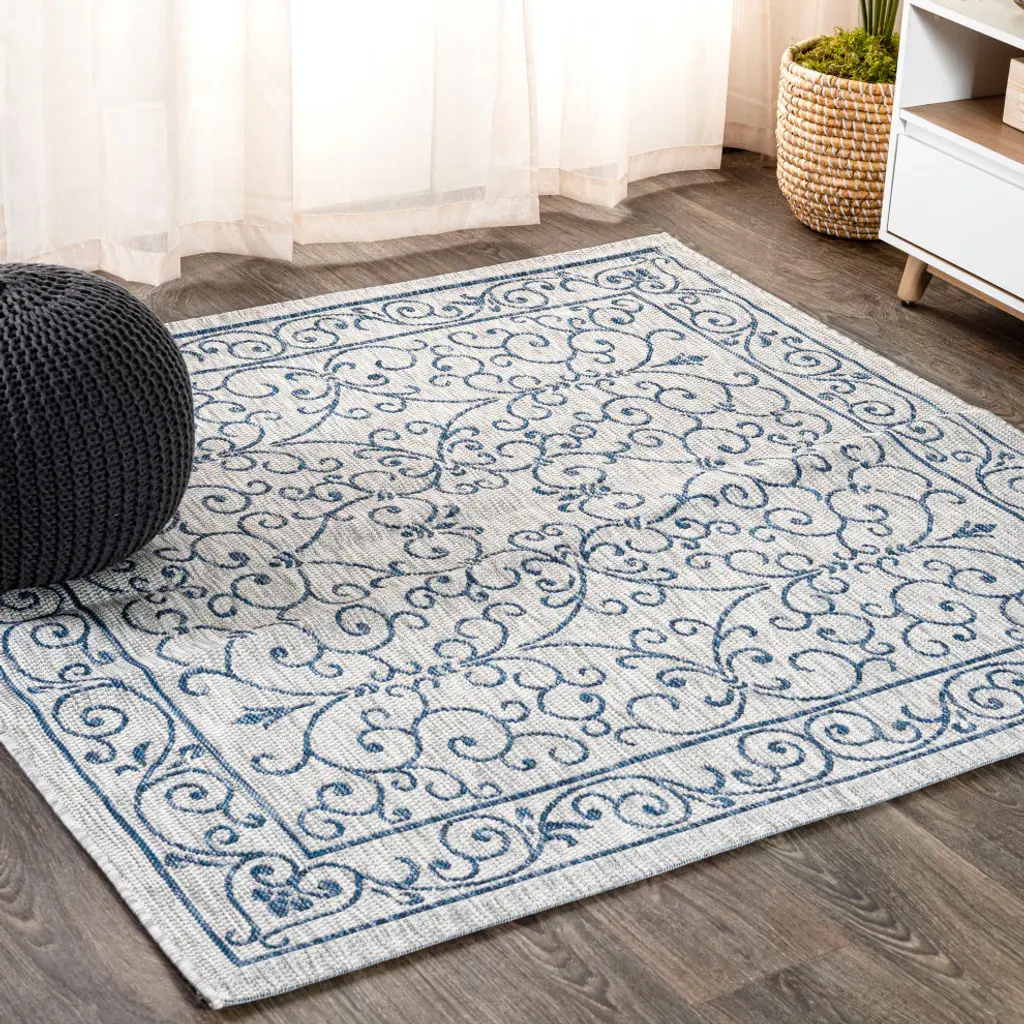 Charleston Filigree Textured Weave Indoor/outdoor, Gray/navy, 5'3" Square