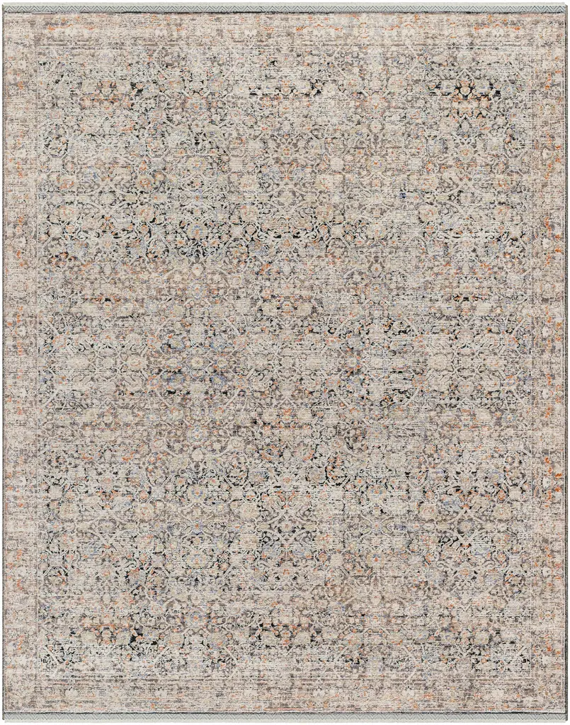 Collection: Charo Colors: Light Gray, Taupe, Gray, Medium Brown, Dark Brown Construction: Machine Woven Material: 100% Polyester Pile: Medium Pile Pile Height: 0.35" Styles: Traditional Made In: Turkey Thickness: 0.55" Fringe Length: 0.59" Price Range: $$$$$ (Affordable)