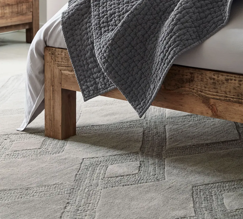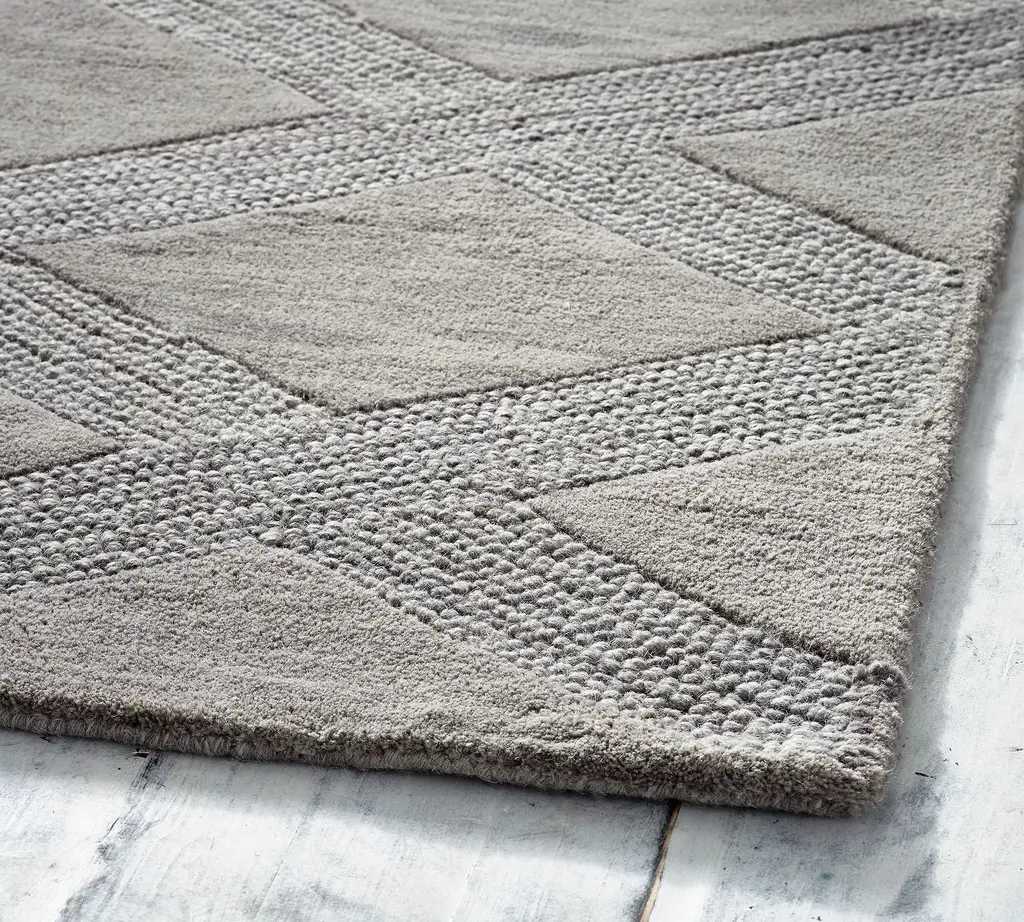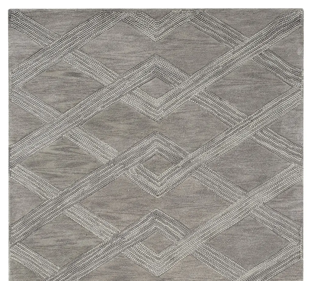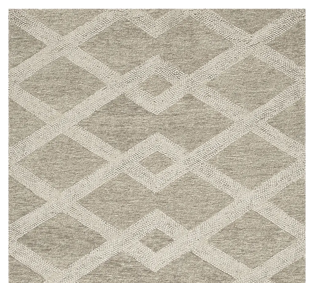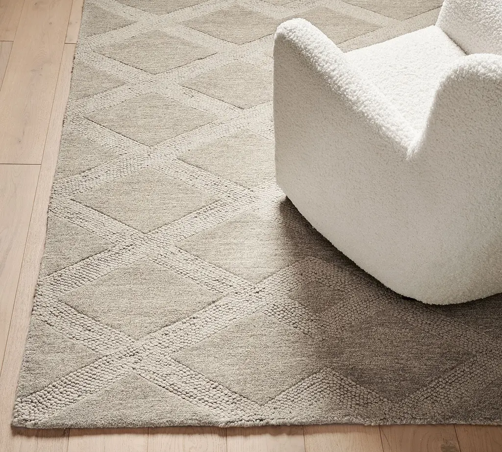 We love how easily this transitional tone-on-tone palette can complement your style. Using pure yarn-dyed wool, artisans craft a geometric design that grounds your space with subtle texture and color that lasts. A non-slip base made of recycled cotton helps keep it in place so you can step with confidence.