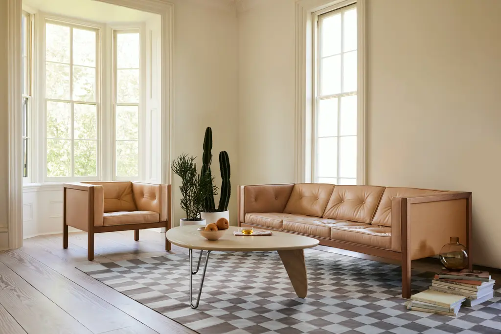 Originally designed by Alexander Girard in 1956 as a table setting, and are part of the recently re-release and transformed as a cotton dhurrie rug. The check pattern engaging meanders between having a graphic and playful spirit.