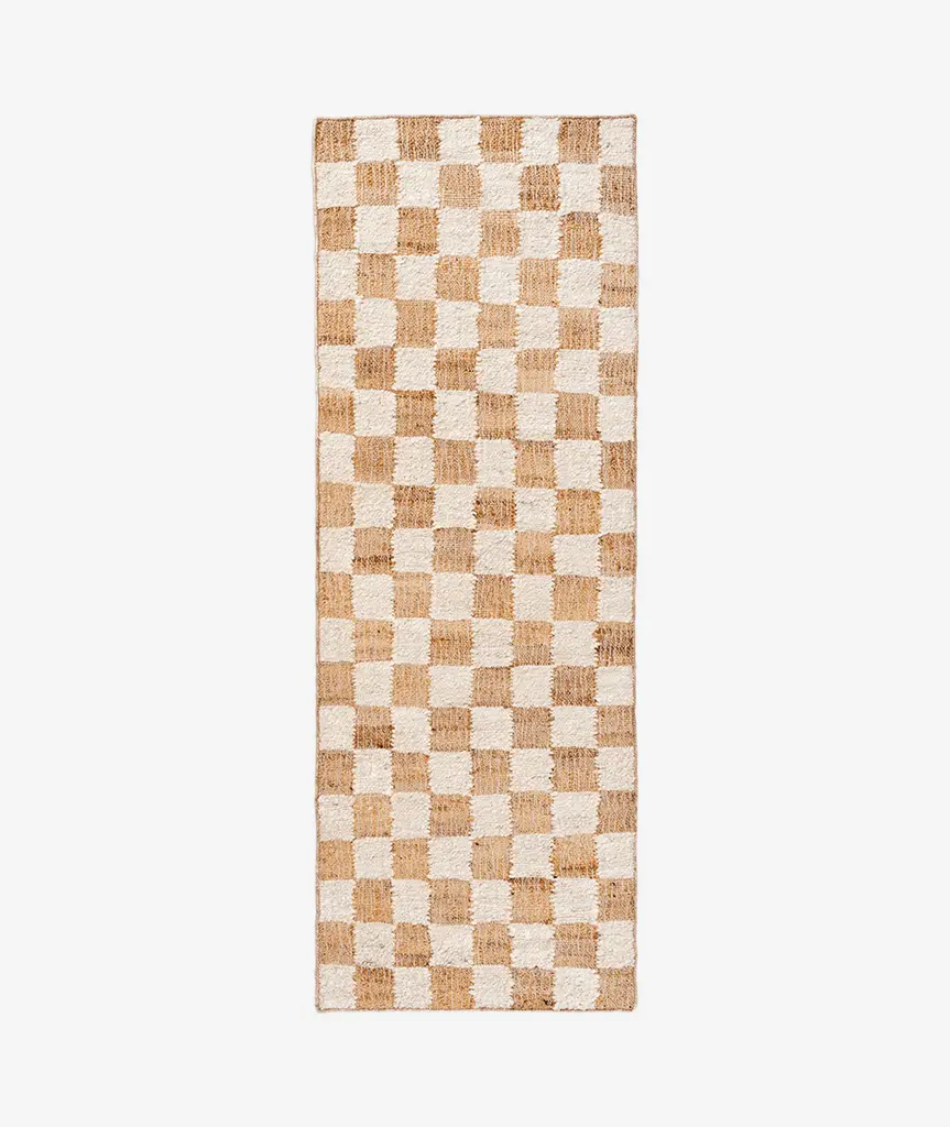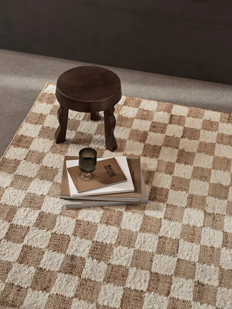 The Check Wool Jute rug collection showcases a harmonious blend of wool in calm, natural tones and natural jute, crafted into a timeless check design. The wool, hand-carded to create an irregular, comforting texture, brings a tactile richness to each rug. With it's classic pattern, the Check Wool Rug is a versatile staple, effortlessly complementing various interior styles with its understated elegance and artisanal quality.