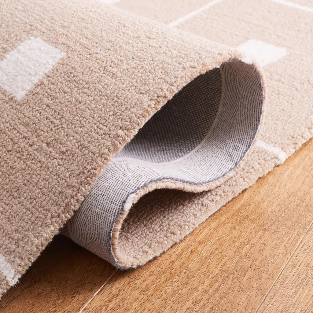 Hand-tufted of wool and cotton, this rug is as soft as it is durable. Its neutral palette and breezy geometric pattern set a restful ambience. A rug pad is recommended to help prevent slipping and extend the life of the rug.
