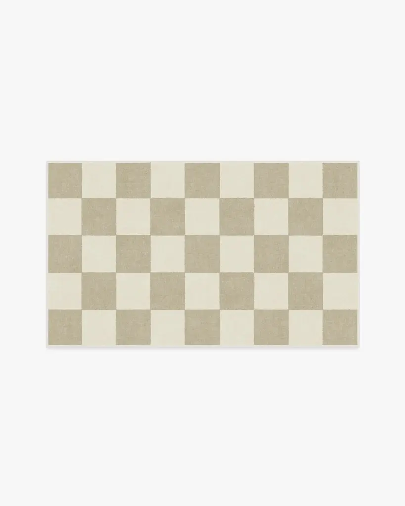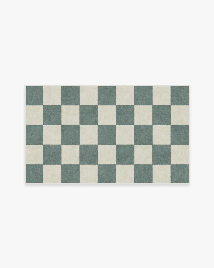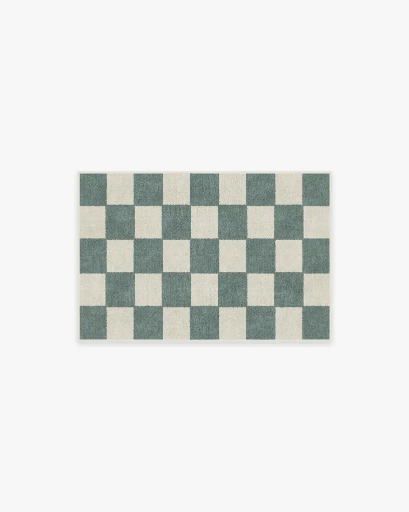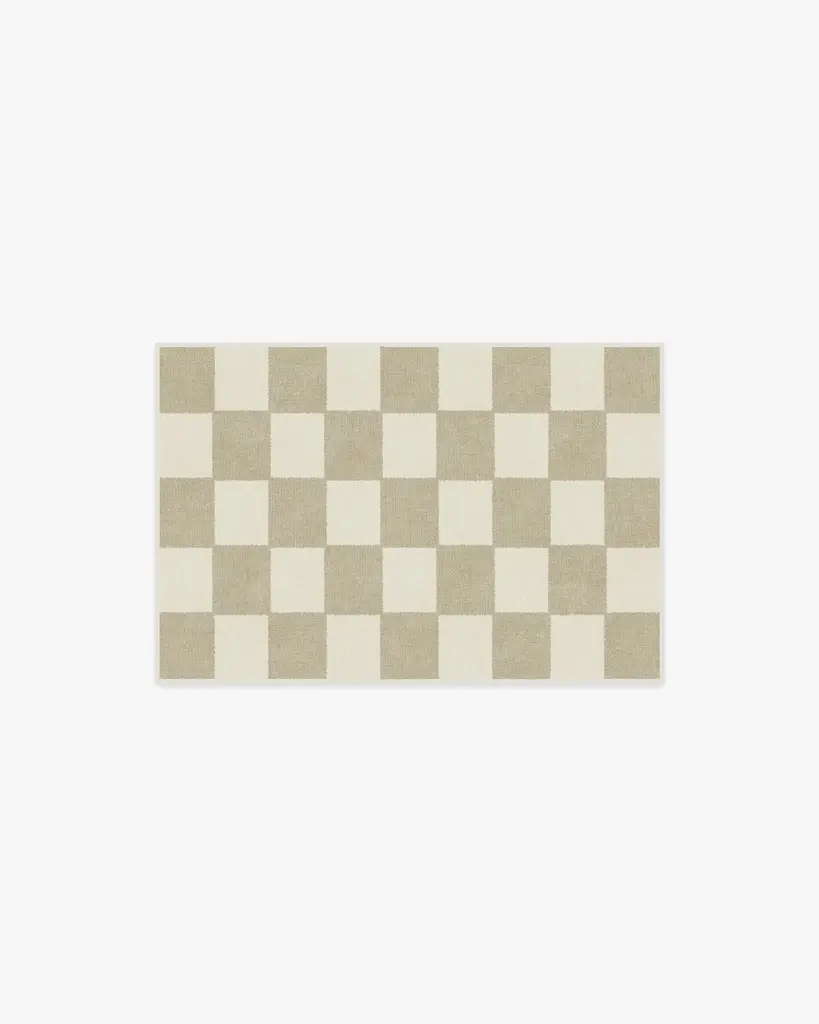 A classic pattern that's sure to turn heads every time. Our Checkerboard Soft Black Re-Jute Rug features a bold geometric pattern in weathered black on a warm beige background that gives off the regal ambience of vintage Italian flooring. The woven jute-like material is made from recycled and virgin polyester, and polyurethane that won't shed or fray. Water-resistant, stain-resistant, and machine-washable.