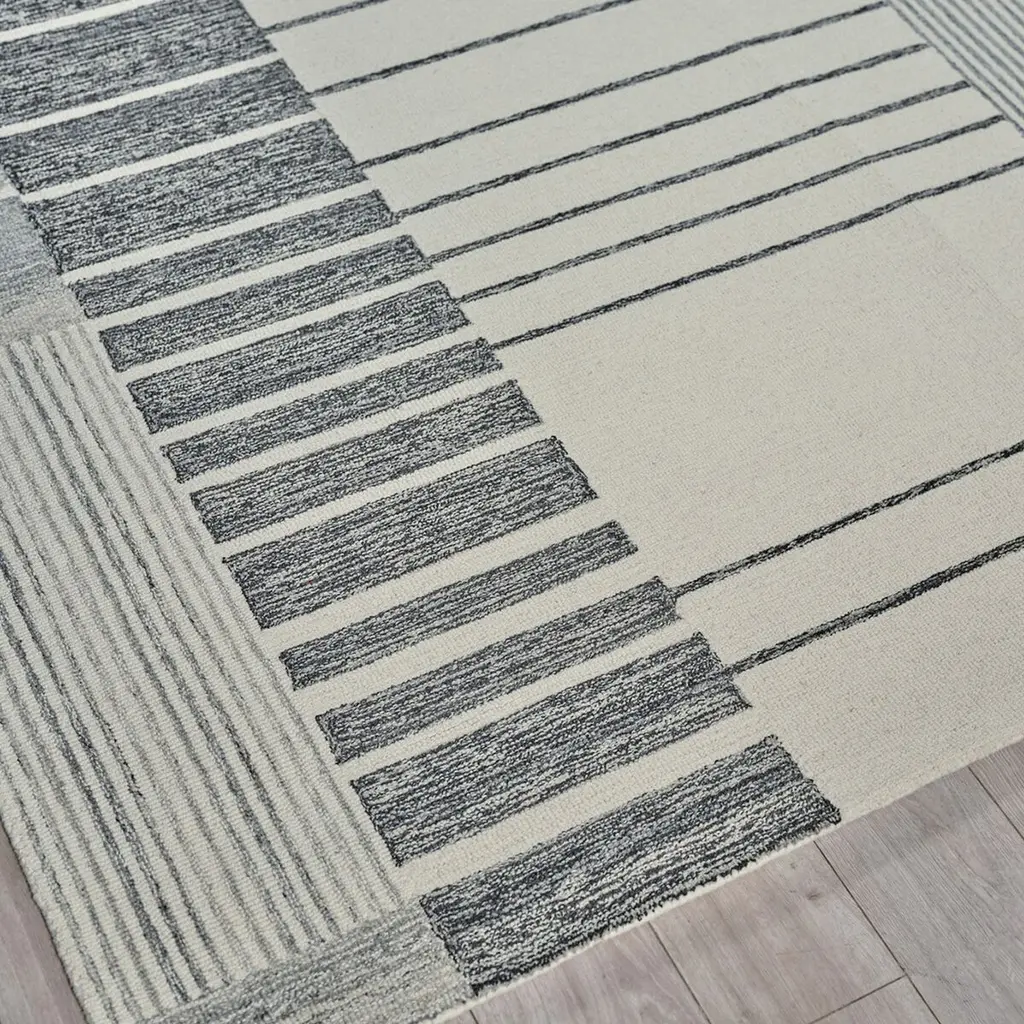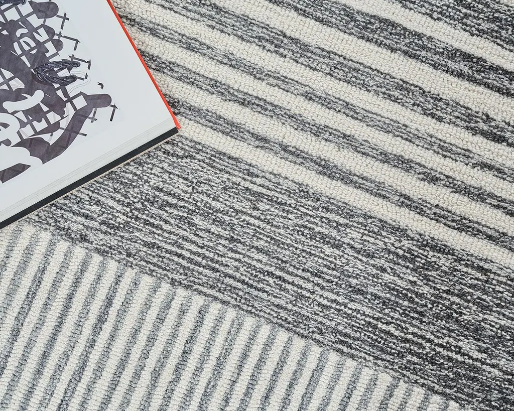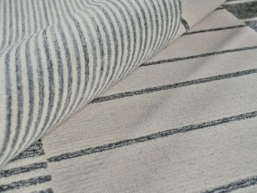 Elevate your space with our hand-tufted wool rug, adorned with a captivating design of stripes and lines. This rug blends style and craftsmanship seamlessly, bringing a touch of modern sophistication to your decor. Crafted with care, it's a perfect addition to enhance any room.