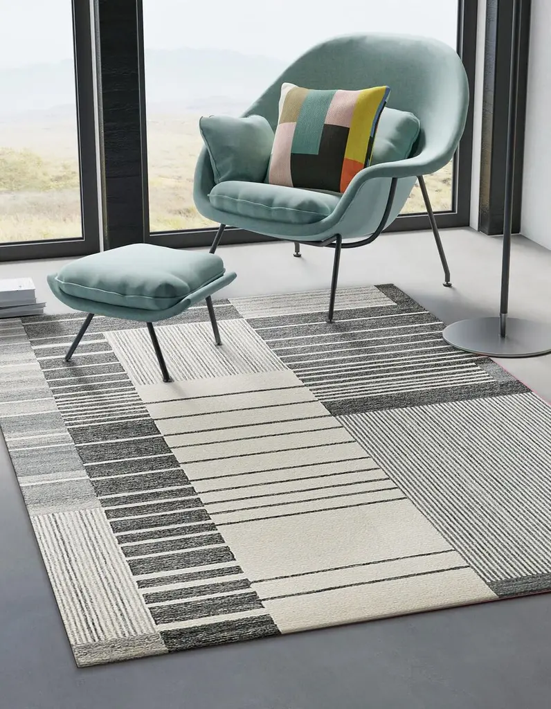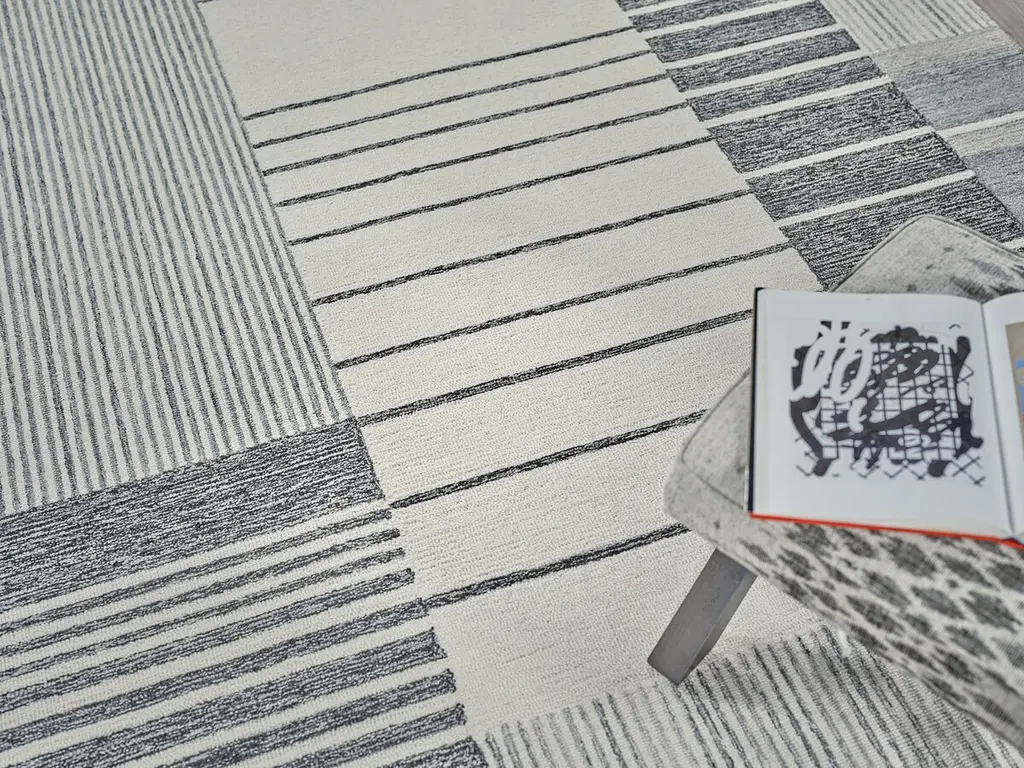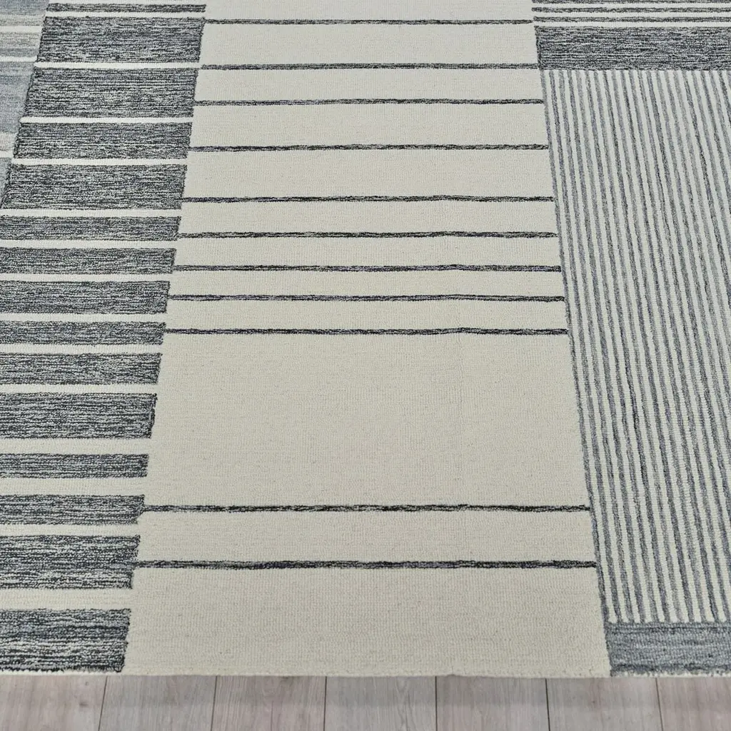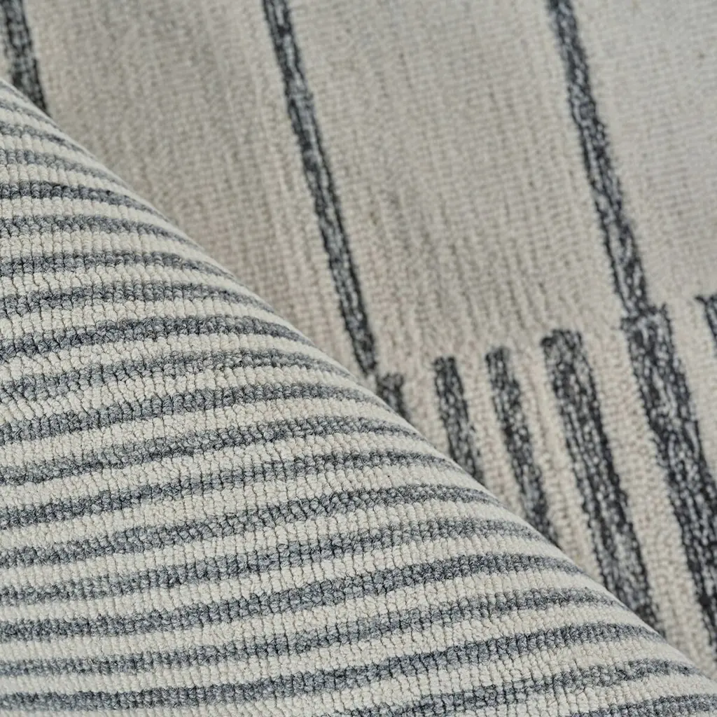 Elevate your space with our hand-tufted wool rug, adorned with a captivating design of stripes and lines. This rug blends style and craftsmanship seamlessly, bringing a touch of modern sophistication to your decor. Crafted with care, it's a perfect addition to enhance any room.