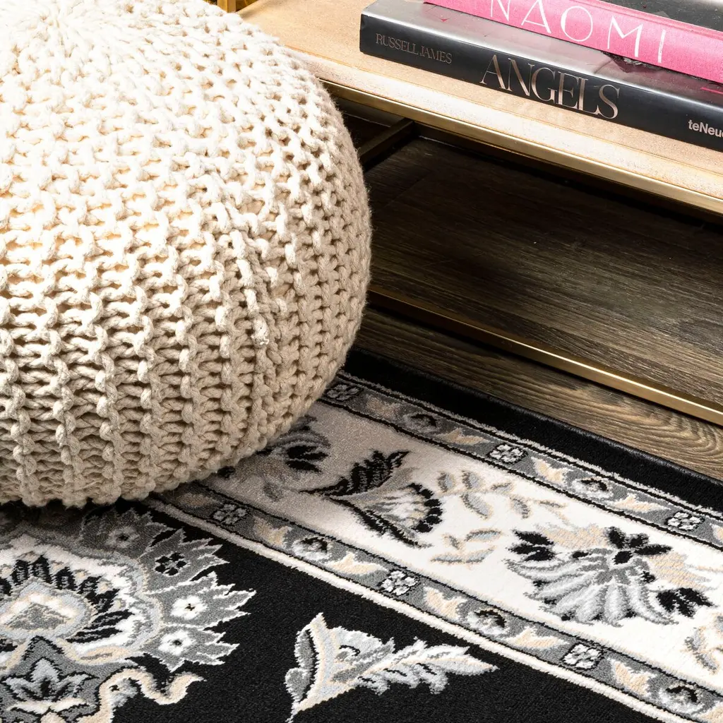 Antique Persian floor coverings inspired this rug's graceful design, though the palette is distinctly contemporary. Made of nonshedding, fade-resistant polypropylene, the rug is suitable for even high-traffic spaces. A rug pad is recommended to help prevent slipping and extend the life of the rug.