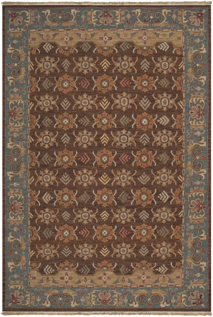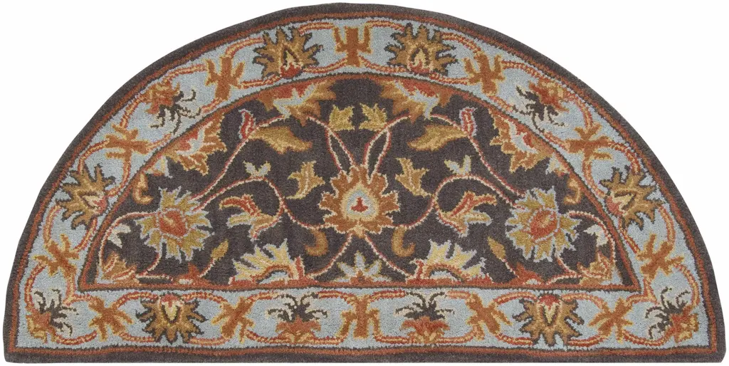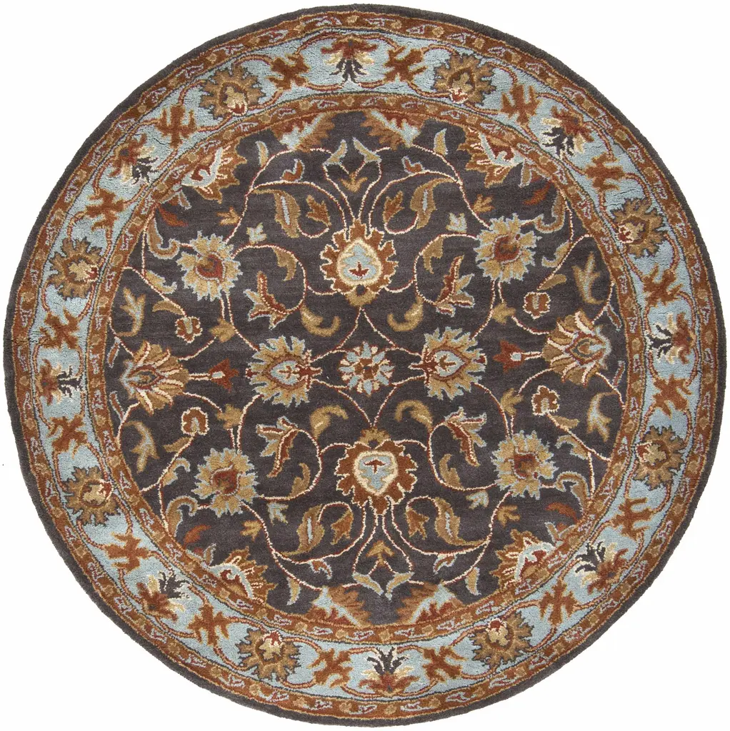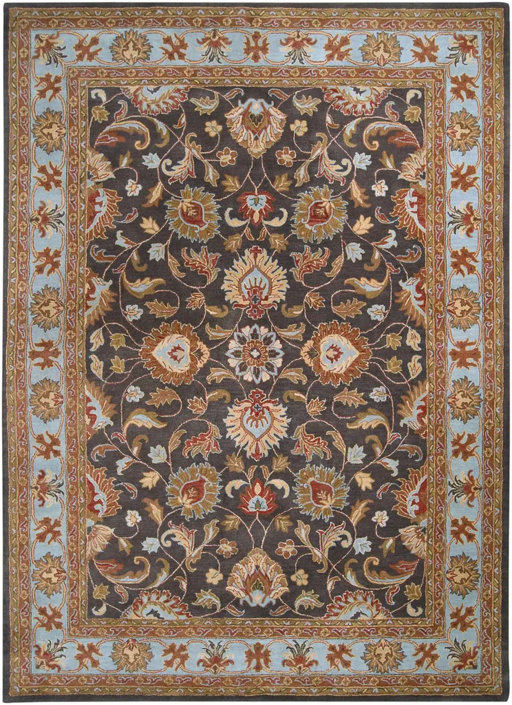 Collection: Indianapolis Colors: Charcoal, Tan, Beige, Blue, Burnt Orange, Dusty Coral Construction: Hand Tufted Material: 100% Wool Pile: Medium Pile Pile Height: 0.39" Styles: Traditional Backing: Canvas Made In: India Thickness: 0.87" Price Range: $$$$$ (Affordable)