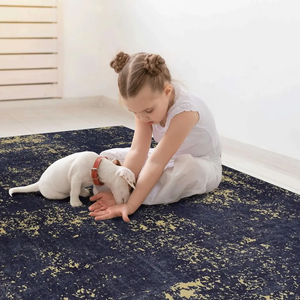 Chery Life Black Washable Rug 3X5 Area Rug (Black+gold, 3' X 5')