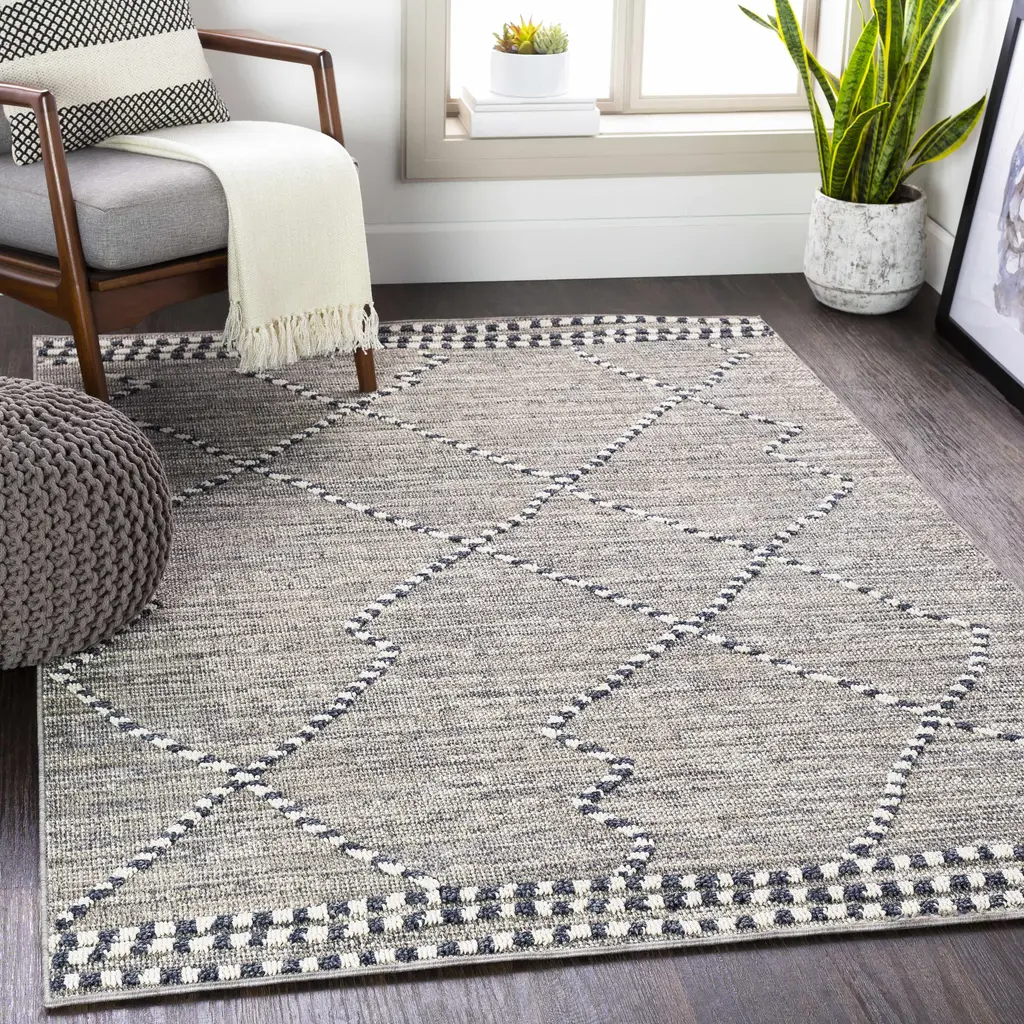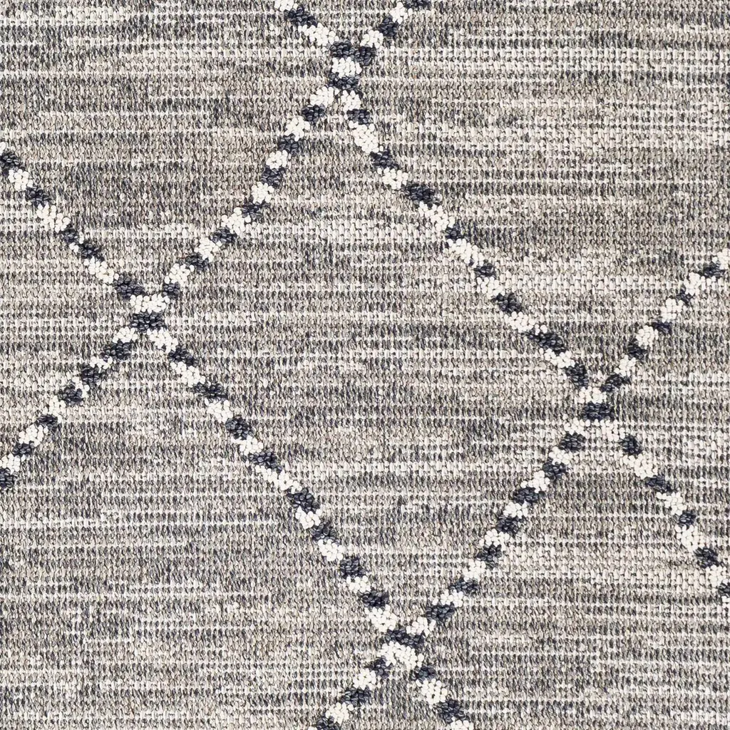 Collection: Cheverly Colors: White, Black, Gray Construction: Machine Woven Material: Face: 100% Polypropylene / Warp: 100% Jute Pile: Medium Pile Pile Height: 0.39" Styles: Transitional, Bohemian Made In: Turkey Thickness: 0.47" Price Range: $$$$$ (Most Affordable)