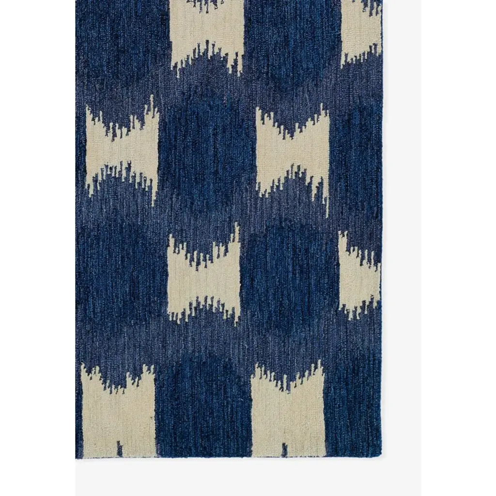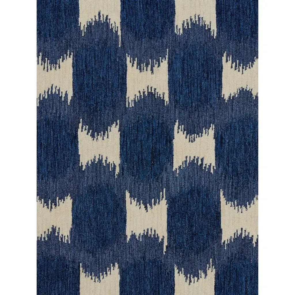 Add a pop of personality to your space with this bold area rug. It's handmade from naturally-durable wool, and it showcases a traditional ikat pattern in beige and navy blue hues. We love how the low pile height adds warmth and texture to your living room or entryway floor while still being easy to vacuum. Pro-tip: Pair this piece with a rug pad for additional cushioning and to help keep it from shifting and sliding underfoot.