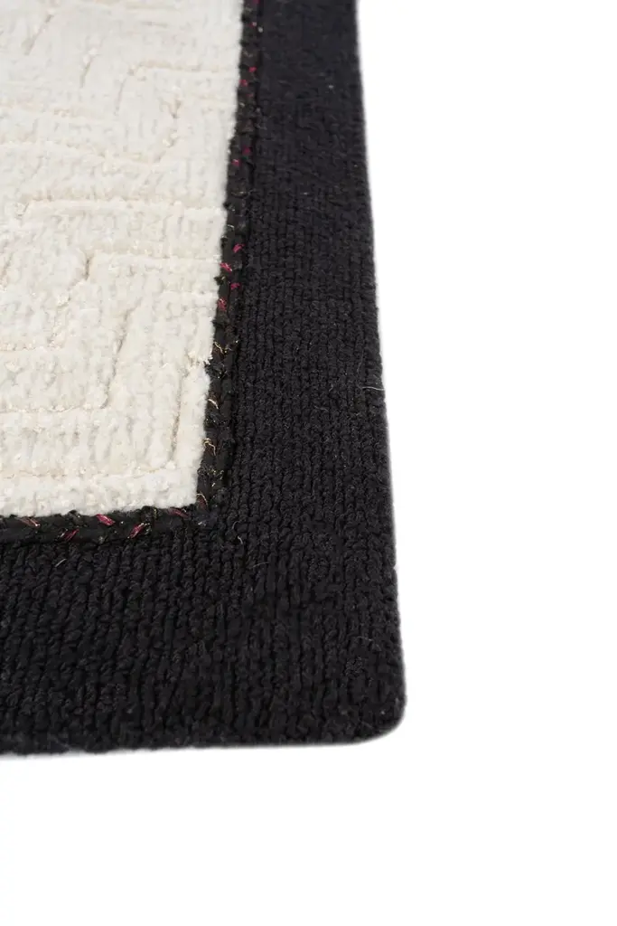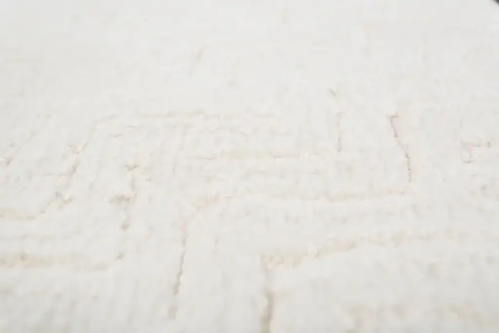 Chic AIAR-3010 is a hand-knotted rug, an extraordinary blend of contemporary design and traditional craftsmanship.In a serene shade of Natural White, this 150x240 cm hand-knotted rug is a masterpiece of flowy geometric symmetry. Its all-over pattern, framed by a prominent border, exudes a refined balance of elegance and structure. Woven with the coveted Vimar 1991 yarns, renowned for their couture legacy under Chanel, the design captures the essence of exclusivity. Jaipur Rugs artisans bring these luxurious materials to life, blending artistry with craftsmanship. This rug transcends functionality, becoming an iconic element of sophisticated décor that echoes the timeless allure of haute couture fabrics, infusing spaces with a sense of bespoke luxury.Composition: 15% Wool, 5% Silk, 35% Cotton, 35% Viscose, and 10% Polyester