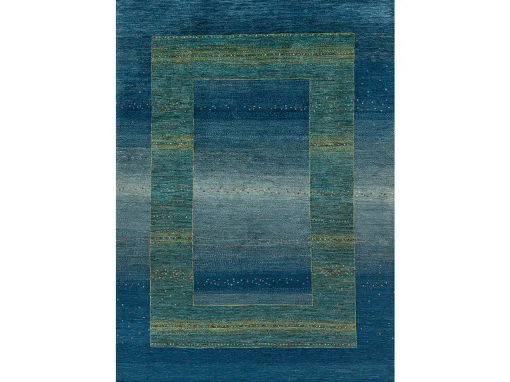 Chimera 41 is a rectangular wool rug.Zollanvari Super Fine Gabbeh. The Chimera Collection, Gabbehs Abstract & Plain, is one of the most popular, enduring, and adaptable of Zollanvari creations. The principle? The simplicity of plain Gabbehs with a tone-on-tone large rectangular motif meets the abstract minimalism of Rothko’s colour field paintings. This is the latest colourway mixing blues, greens and turquoise with an extensive use of abrash… the result: a decorator’s dream!Abstract designs are Gabbeh classics. Zollanvari have produced modern versions of these classics that have won recognition worldwide, including various Carpet Design Awards at DOMOTEX, German Design Awards and Interiors Innovation Awards at IMM Cologne. Abstract & Plain Gabbehs are available in both Zollanvari Fine and Zollanvari Super Fine qualities. We also offer carpets in natural colours (un-dyed wool) and single colours with a mesmerising abrash effect in our Zollanvari Fine ‘Shekarlou’ range, woven by Turkmen tribes in northern Iran. These carpets are lighter due to the use of a single weft between rows of knots.