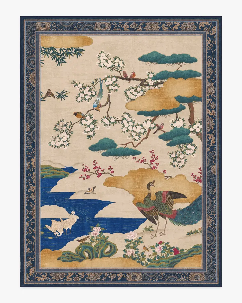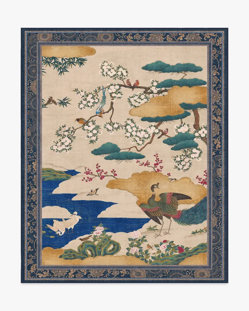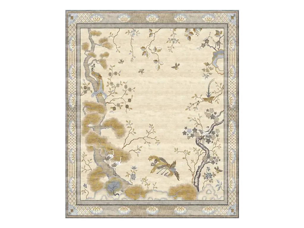 Material: SilkKnot Density: 200 knots/inch²Pile Height: 4mmTechnique: Hand-knottedCustom sizes and colors on requestThe Chinoiserie collection is composed of a series of intricate and elegant rugs inspired by the rich cultural heritage of China. The collection presents a range of stunning designs drawn on ancient myths and legends, steeped in symbolism, and beautifully crafted.We have expertly restored illustrations from the late Ming and early Qing dynasties and have brought these designs to life in various ways. Some rugs faithfully reproduce the original artwork, while others feature modern color schemes or have been reinterpreted into entirely new compositions.The materials used are of the highest quality, including 100% pure Chinese silk and New Zealand wool.The rug Floating Lotus River Blue, has a composition of 62% wool, 38% silk, a knot density of 100 knots/inch², and 4 mm pile height.