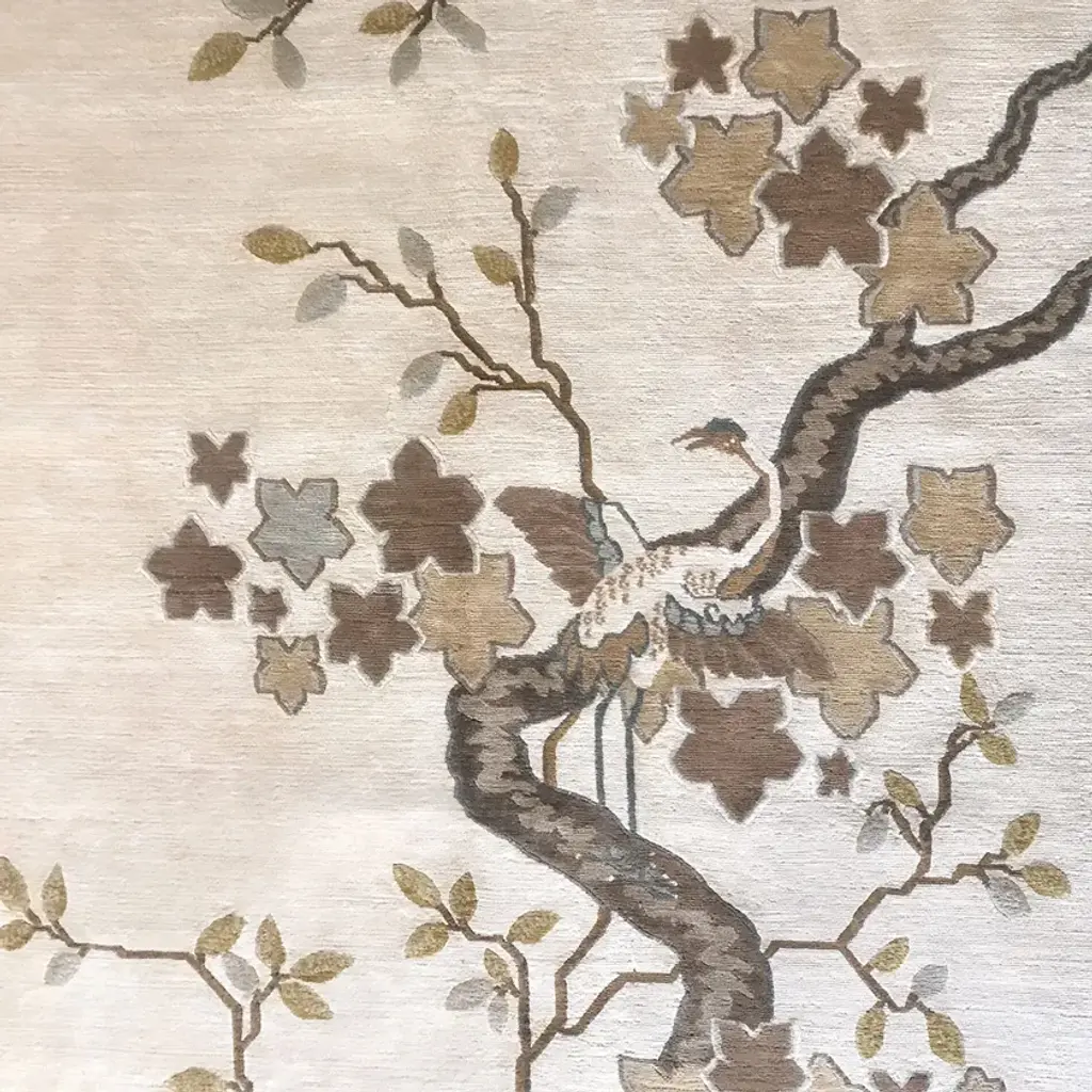 Material: SilkKnot Density: 150 knots/inch²Pile Height: 4mmTechnique: Hand-knottedCustom sizes and colors on requestThe Chinoiserie collection is composed of a series of intricate and elegant rugs inspired by the rich cultural heritage of China. The collection presents a range of stunning designs drawn on ancient myths and legends, steeped in symbolism, and beautifully crafted.We have expertly restored illustrations from the late Ming and early Qing dynasties and have brought these designs to life in various ways. Some rugs faithfully reproduce the original artwork, while others feature modern color schemes or have been reinterpreted into entirely new compositions.The materials used are of the highest quality, including 100% pure Chinese silk and New Zealand wool.The rug Floating Lotus River Blue, has a composition of 62% wool, 38% silk, a knot density of 100 knots/inch², and 4 mm pile height.