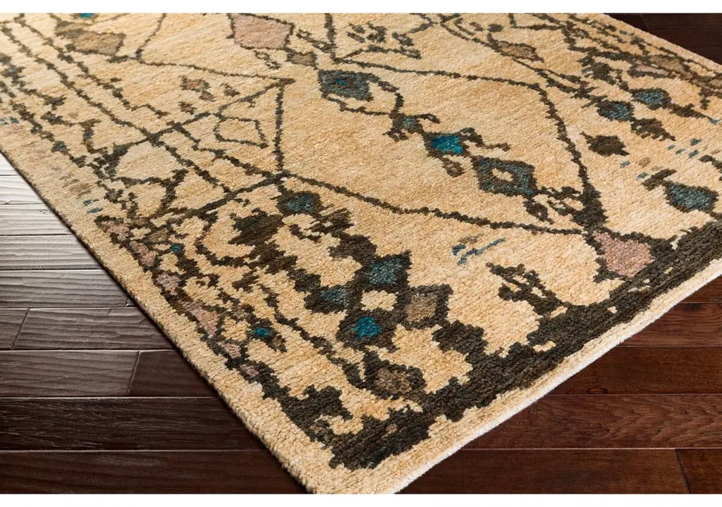 Hand-knotted of hearty jute fibers, this rug features ancient tribal motifs and rich natural texture.