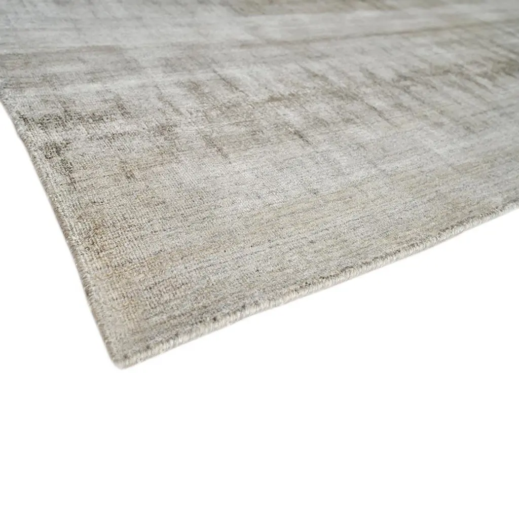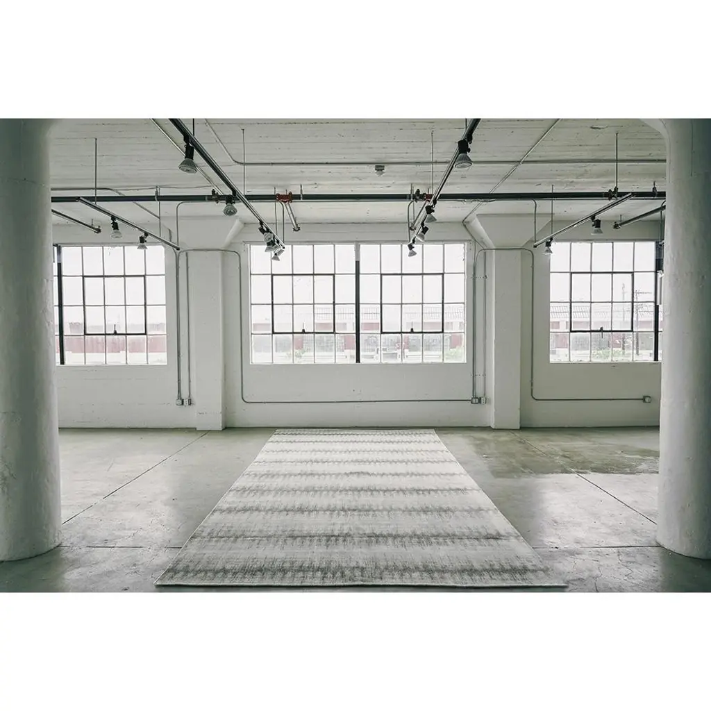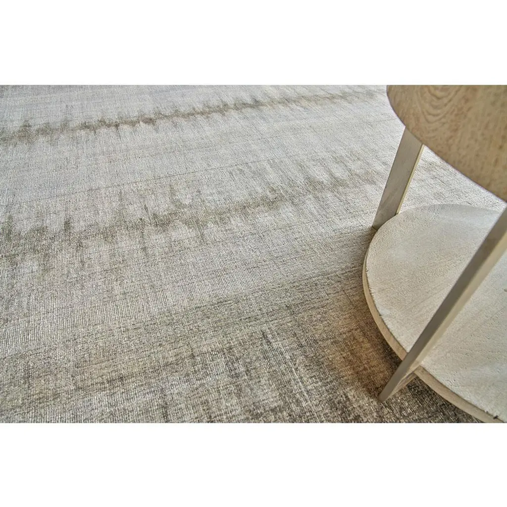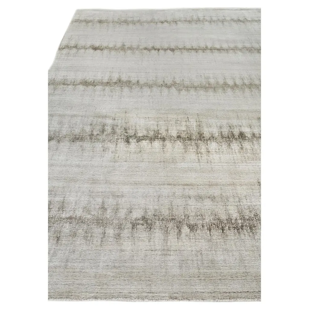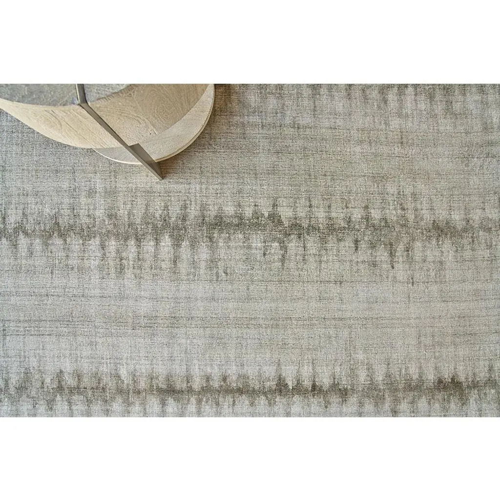 Rug swatch available! To order, choose SAMPLE in the size drop-down.With a neutral palette and artful design, the 10’x14’ Chloe rug makes a lively addition to a living room, bedroom, or dining room. Hand-loomed with wool and bamboo silk in shades of charcoal and grey, a repeating geometric wave pattern is the highlight of this dreamy designer rug.