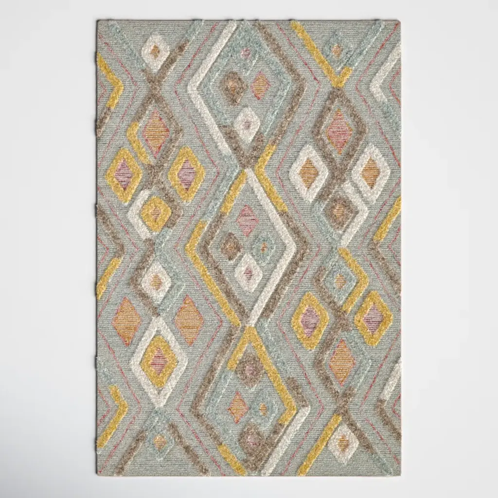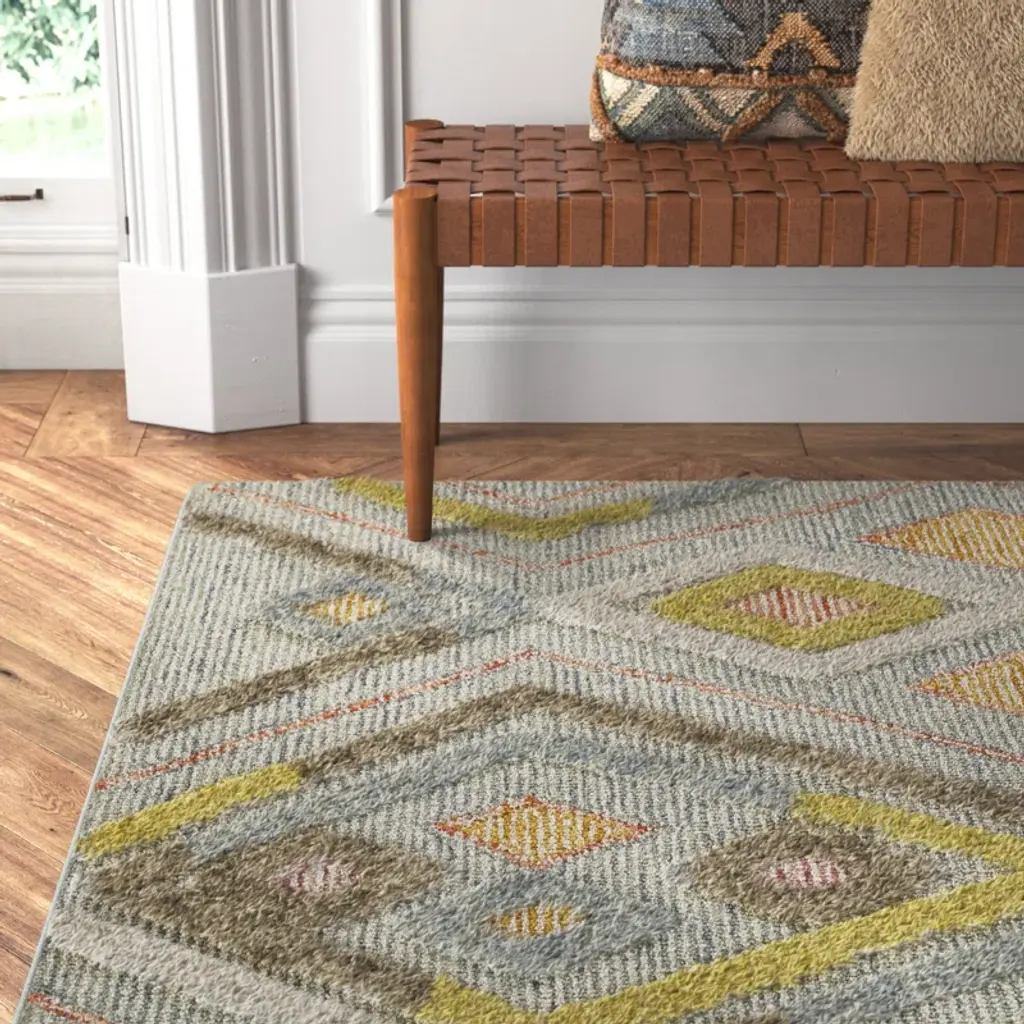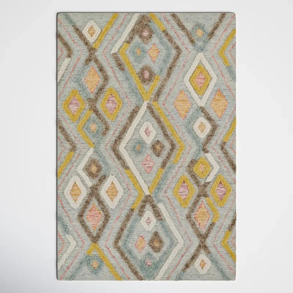 Add a pop of personality to your space with this bold area rug. It's handwoven from naturally-durable wool, and it showcases a geometric design with diamonds and zigzags in gray, yellow, and brown hues. We love how the differing pile heights – with raised shag sections paired with a ribbed base – add visual and underfoot texture. Pro-tip: Pair this piece with a rug pad for additional cushioning and to help keep it from shifting and sliding underfoot.