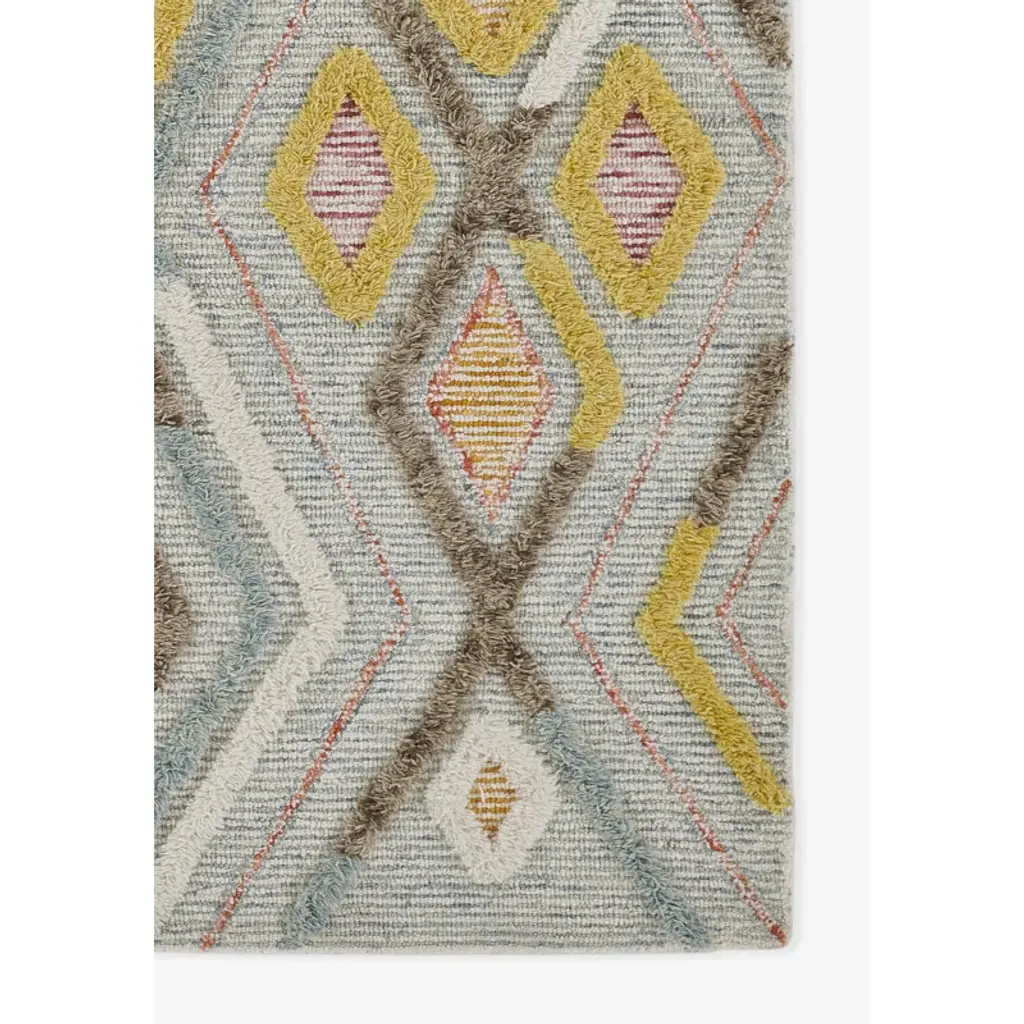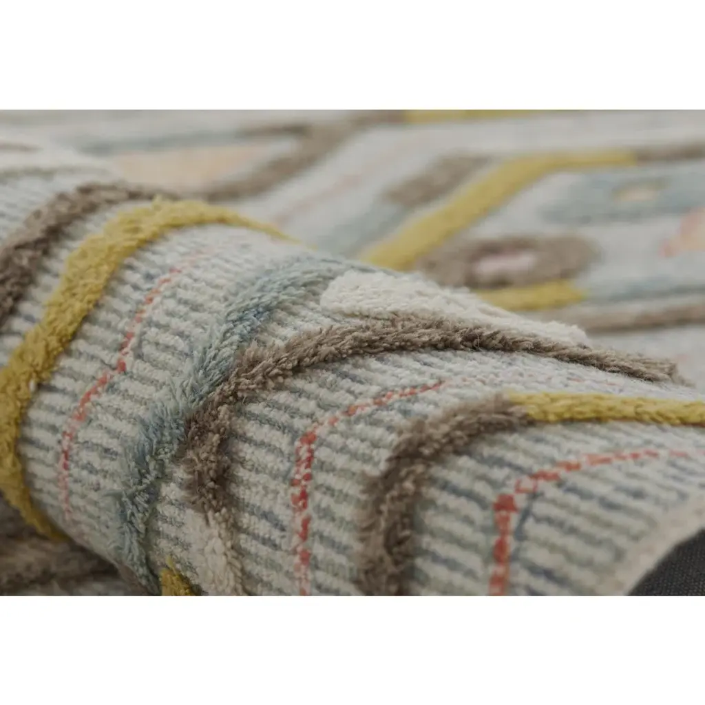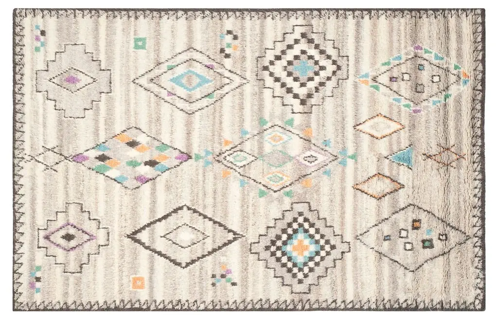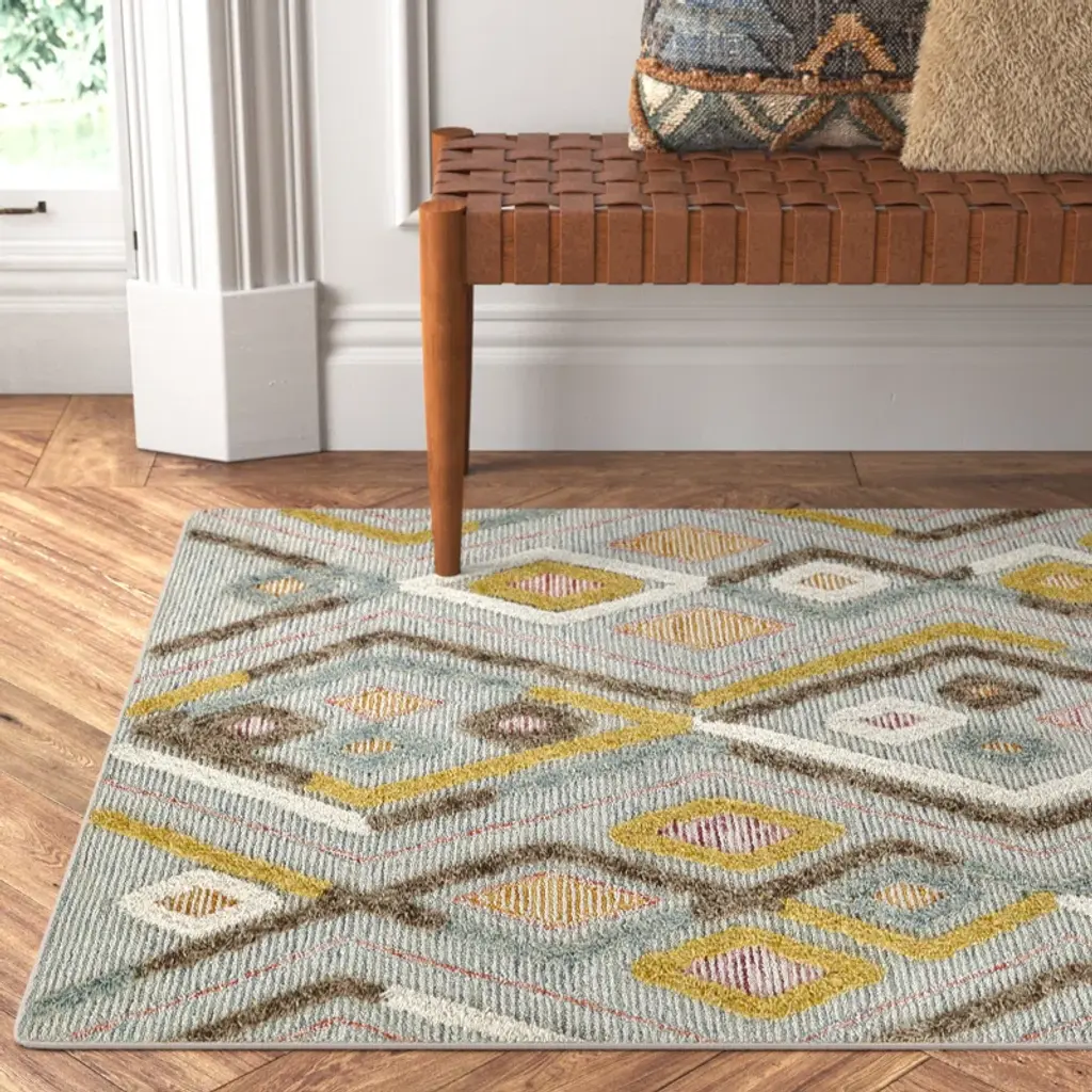 Add a pop of personality to your space with this bold area rug. It's handwoven from naturally-durable wool, and it showcases a geometric design with diamonds and zigzags in gray, yellow, and brown hues. We love how the differing pile heights – with raised shag sections paired with a ribbed base – add visual and underfoot texture. Pro-tip: Pair this piece with a rug pad for additional cushioning and to help keep it from shifting and sliding underfoot.