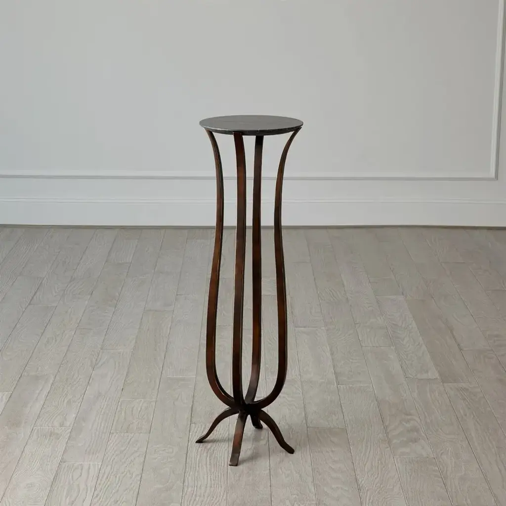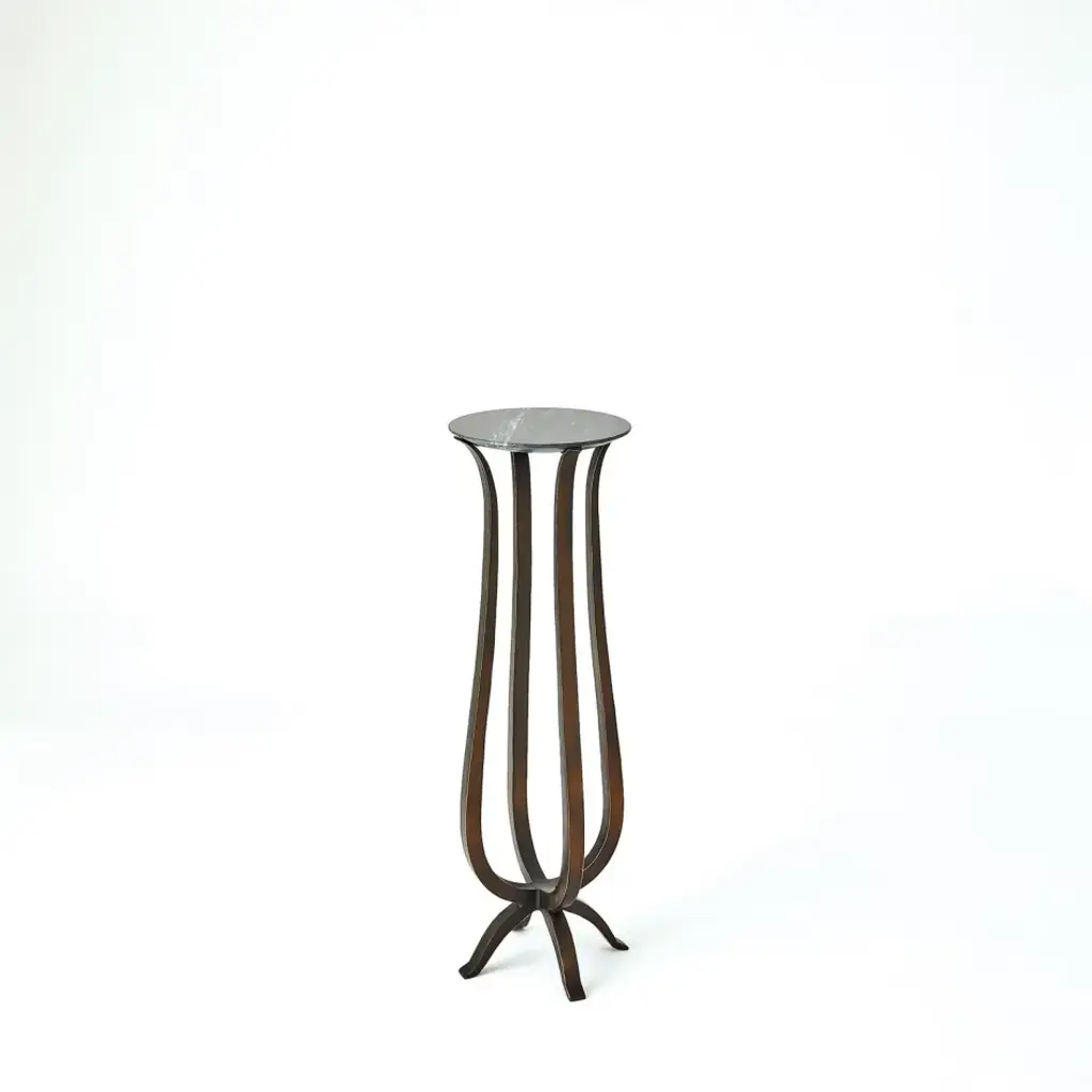 The Chorda Pedestal reflects the classic shape of the Grecian pulled longbow. Constructed of hand forged iron with a faux bronze finish supporting a black Udaipur marble surface. From a fashion forward perspective, Global Views offers accessories, furniture, statement lighting, and an assortment of rugs and mirrors to add beauty and joy to your home.