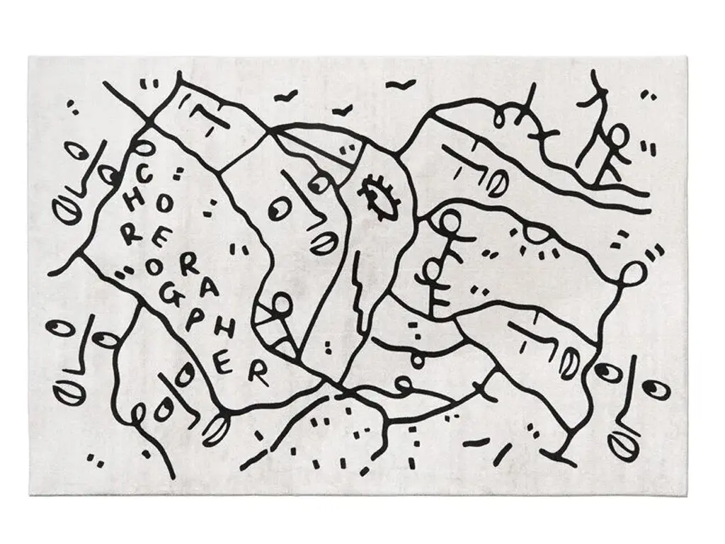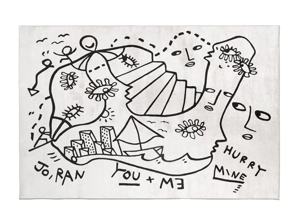Shantell Martin is excited to collaborate with Qeeboo to bring this thoughtfully designed collection to collectors and homes. With each thoughtfully designed piece, this collection is a vibrant expression of art intertwining with daily life—an invitation for enthusiasts and collectors alike to embrace the transformative power of design.Linescapes collection includes a series of poufs, cushions and carpets all characterised by lines, texts and stylized drawings in black and white, a recurring language that Shantell uses in her artwork.The series of carpets is distinguished by some black and white round shaped ones: Circular Chronicles, Summer trip, Morning thoughts, Silent Moon and some black and white rectangular ones in two different sizes: CoreograpHER, Whispering Waves, Dream Dimension.