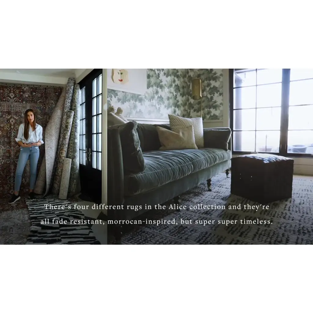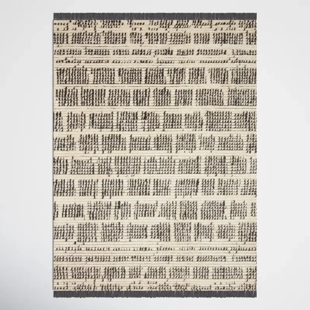 Inspired by the classic Moroccan rug, the rug is durable, and graphic, has a soft underfoot, and is finished with a subtle fringe.