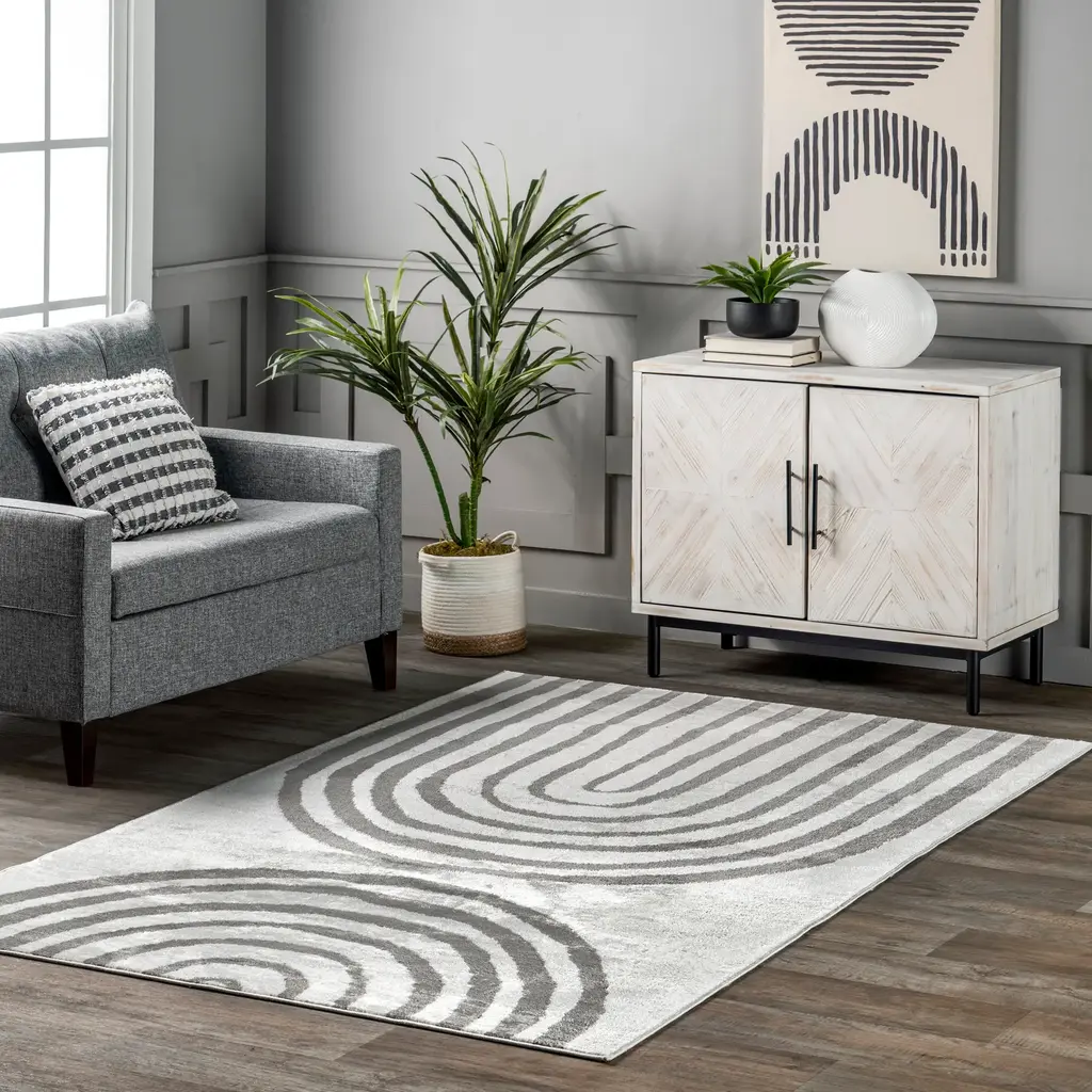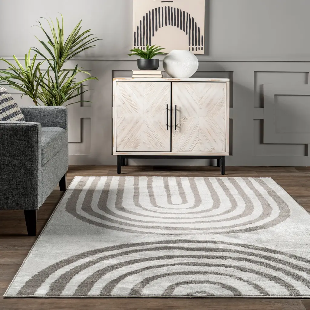 Christa Contemporary Curves Rug | Light Grey - 4' 3" X 6'