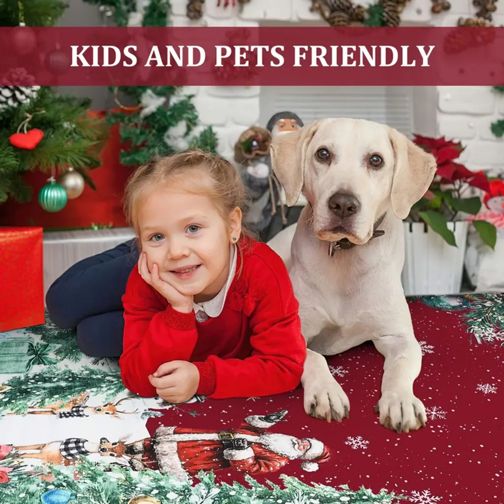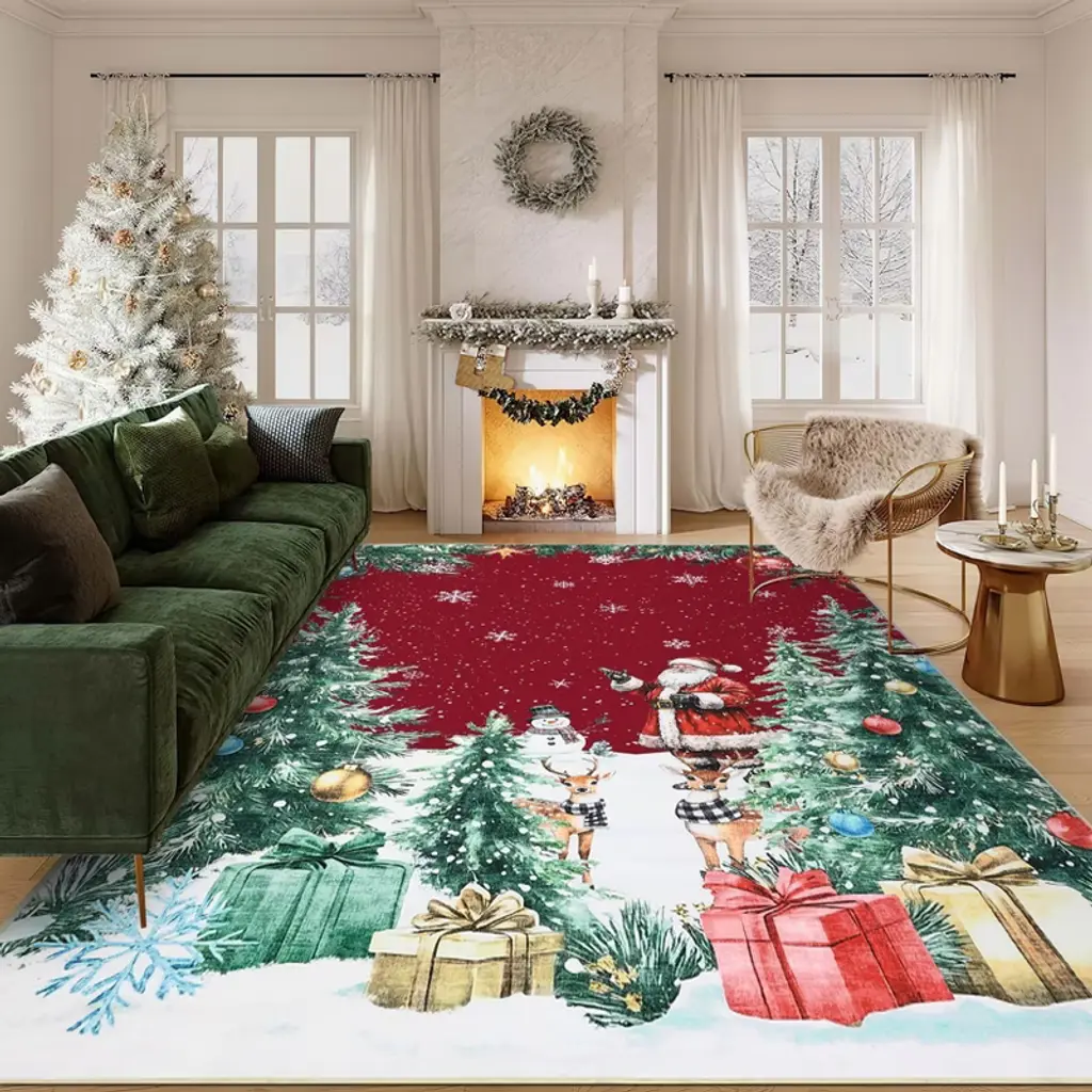 Festive Christmas Area Rug – Non-Slip, Machine-Washable Low-Pile Accent Carpet for Living Room, Bedroom & Holiday Decor Want to fill your space with rich Christmas cheer? Just picture this soft rug, adorned with classic holiday elements—jolly Santa Claus, cute snowmen, lush Christmas trees, and vibrant gift boxes. It instantly turns your living room or bedroom into a cozy holiday haven. Where would you love to showcase this charming festive centerpiece? Tired of rugs that slip around or bunch up? A low-pile, non-slip design stays perfectly in place. It lets you soak up the holiday atmosphere without fretting over trips or adjustments—how much peace of mind would that add to your busy holiday preparations? Looking for hassle-free comfort for family gatherings? Think of a rug that’s fully machine-washable. Even if there are spills from holiday treats, crumbs from cookie baking, or little messes from kids and pets during celebrations, cleaning is a breeze. How would this simplify your holiday routine, letting you focus more on joy than chores? Note: When your Christmas area rug arrives, it may have temporary creases from folding during shipping. To smooth them out, simply roll the washable rug in the opposite direction of the creases, lay it flat on the floor, and gently press down. The creases will fade completely within a few days. Be sure to measure your space before choosing a size—this ensures the rug covers your desired area and coordinates seamlessly with your Christmas decorations and surrounding furniture, tying your holiday decor together perfectly.