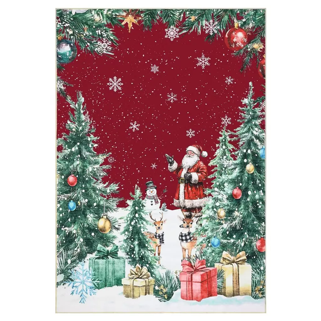 Christmas Machine Washable Rug With Non-slip Backing Low Pile Foldable Xmas Carpet For Bedroom Living Room Playroom