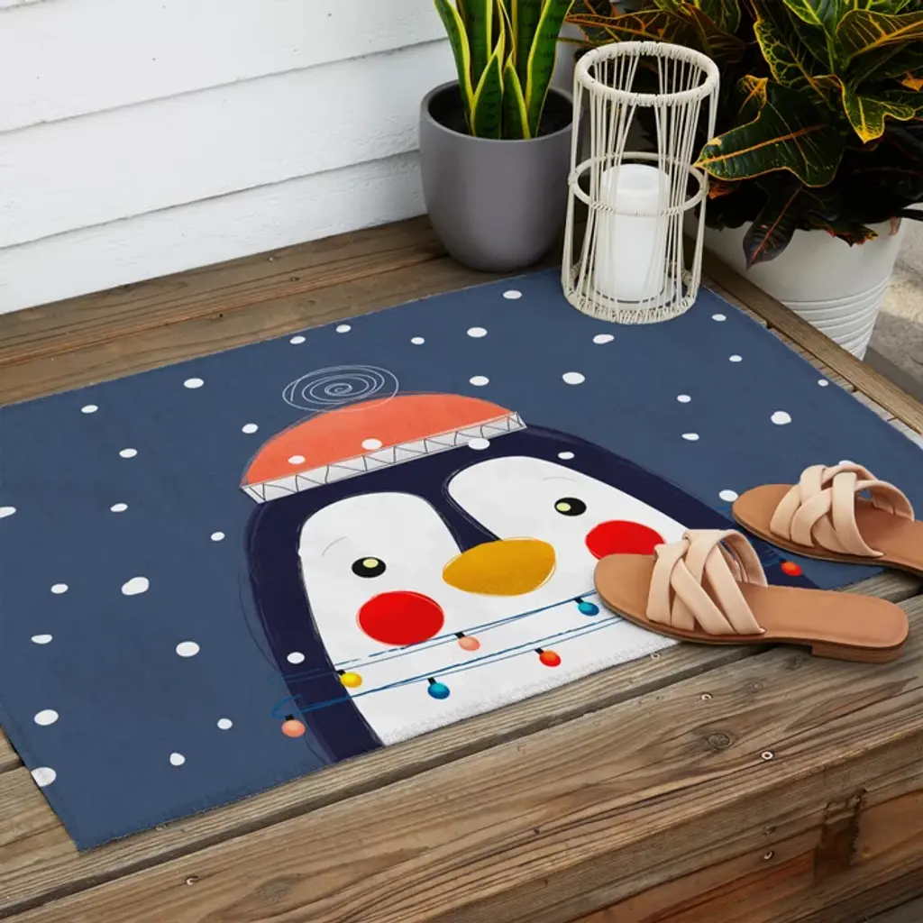 Christmas Penguin With Fairy Lights No2 Outdoor Rug