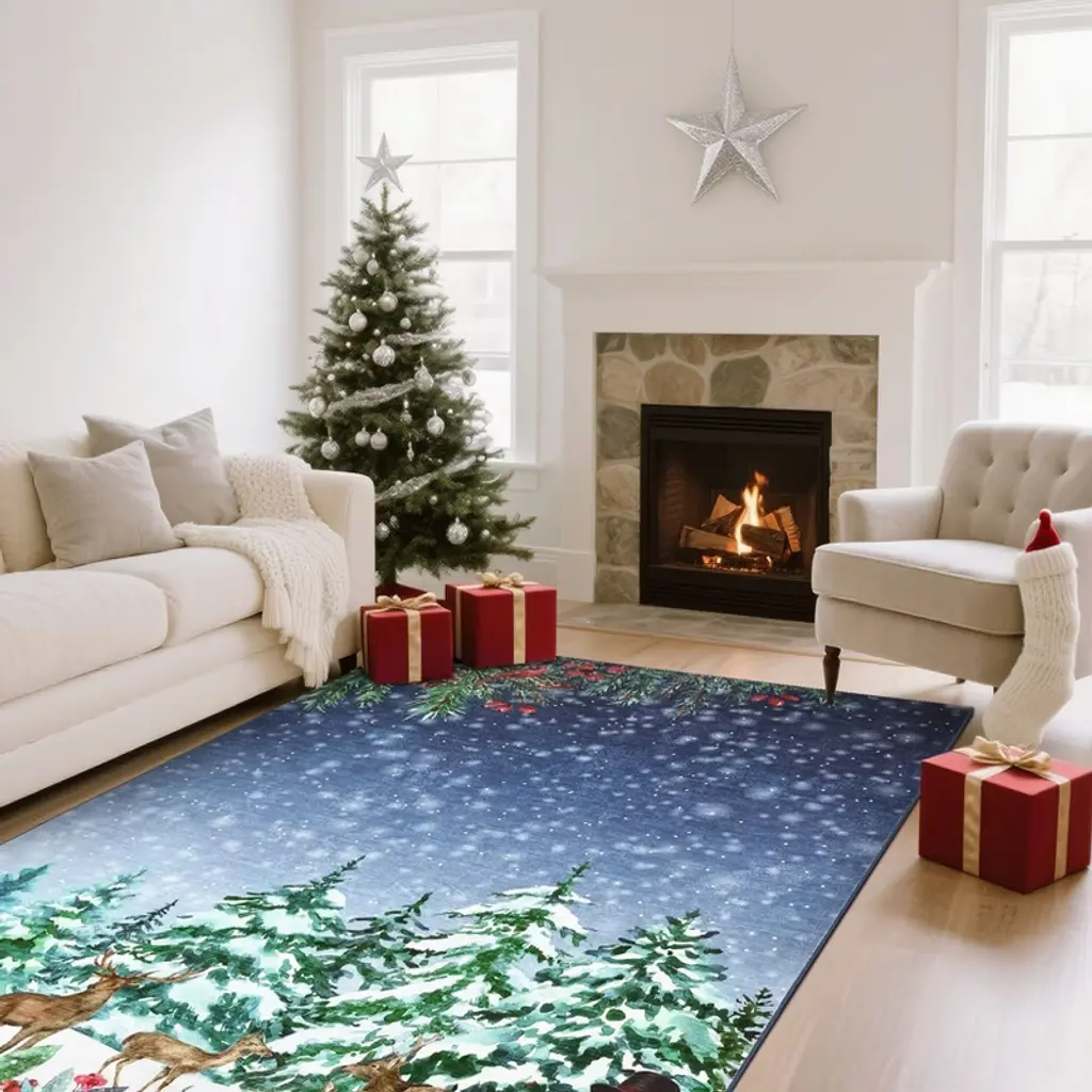 Bring festive cheer and cozy comfort to your home with this washable Christmas area rug—featuring charming holiday designs, a soft non-shedding surface, and a non-slip, low pile for safe, easy holiday decorating! Highlights at a Glance:- Festive Christmas area rug with Xmas tree, reindeer and snowman patterns - Soft, stain-resistant, and non-shedding washable rug - Non-slip low pile rug perfect for high-traffic indoor spaces - Easy-care Christmas carpet, machine washable for convenience - Versatile accent rug for living room, dining room, or bedroom Specification:Material: PolyesterColor: BlueSize: 2x6 ft/2x8 ft/2x10 ft/4x6 ft/5x7 ft/6x9 ft/8x10 ftApplication: Bedroom/Living Room/Hallway/Office/Nursery Packing List:1 x Area Rug1 x Instruction Manual Note:When area rug arrives, there may be temporary creases, you can roll the washable rug in the opposite direction and lay it flat on the floor while applying pressure to the carpet, the creases will disappear completely in a few days.Measure your space and choose the appropriate size. Ensure that the carpet can cover the area you want and coordinate with the surrounding furniture.