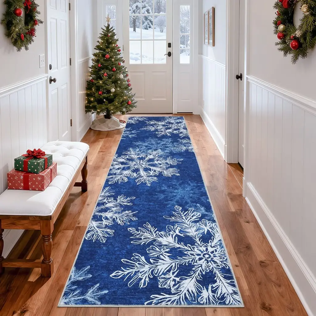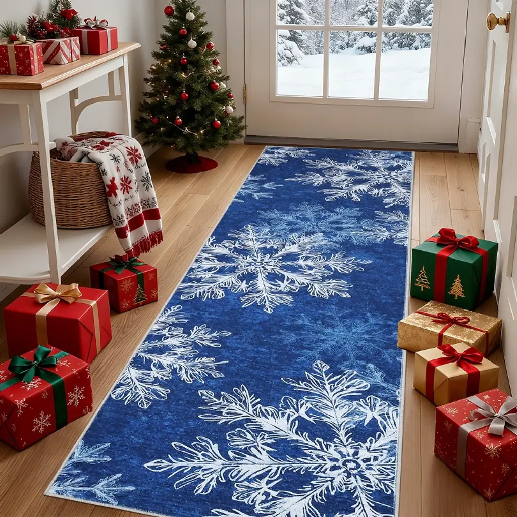 Christmas Area Rug, Machine Washable Snowflake Non-Slip Entryway Rug, Living Room Rug Soft Low Pile Stain Resistant Throw Rugs