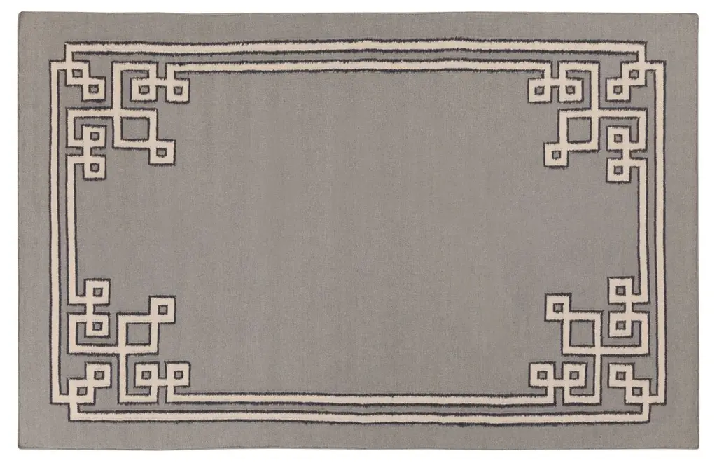 Elevate the everyday with The Hiltons Chrysler Border Chambray Blue Rug. Inspired by the iconic architecture of the Art Deco era, this glamorous design features bold, geometric column-like structures. The Eastern-inspired, light cream corner motifs add grandeur and classic charm against the lovely, powder blue background. Water-resistant, stain-resistant, and machine-washable. Rug colors may vary slightly according to your device and the lighting in your space.